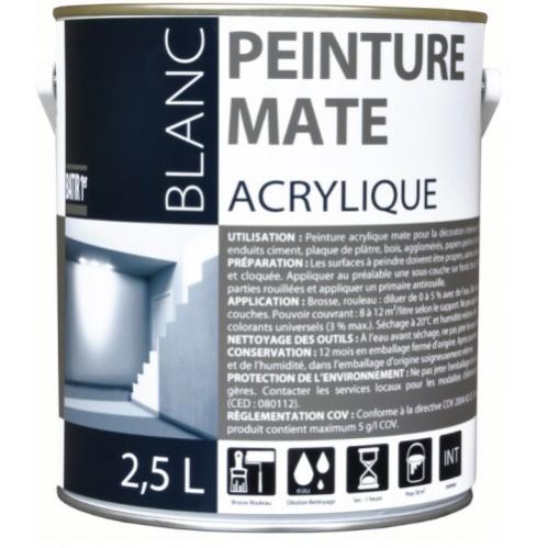 Type de produit : couleur , Marque : OIKOS Peinture intérieure monocouche lavable acrylique blanc - [MARQUE Idéale dans toutes les pièces à vivre : salon, séjour, chambre, couloir, montée d’escalier… Laisser sécher 2 à 4 heures entre deux couches. Sa formulation à base de résines acryliques en dispersion aqueuse, pigments et charges couvrantes, rend le produit particulièrement indiqué pour les enduits civils nouveaux et anciens, enduits à plâtre, murs déjà teintés même avec des teintes fortes, peut également être utilisé pour l'application en extérieur., SUPERCOLOR BLANC LT., 1OIKOS Peinture Blanc intérieur Murs et Plafonds BLANC MAT 10 L... Découvrez la marque EVALUX en exclusivité chez Brico Dépôt. Il est également possible de l'appliquer sur d'anciennes peintures acrylique et glycéro, sur papiers peints, papier à peindre, toile de verre, dalles plafond, polystyrène, plaques de plâtre, ciment, béton, brique, crépis, plaquettes de parement, bois (bruts, vernis et lasurés), lambris, médium, aggloméré, sur portes isoplanes et postformées, sur plinthes, et sur radiateurs (prépeints, cuivre…). La peinture Blanc Easy Cover ® V33 convient pour les murs, plafonds et boiseries. Peinture Blanche Leroy Merlin Peinture Blanche - Leroy Merlin Peinture Blanche Mat Boucher les trous ou autres défauts avec un enduit. Nettoyage : Retirer le plus gros de la peinture sur les outils avec une spatule immédiatement après utilisation, puis rincer à l'eau tiède. Bien refermer le pot après utilisation. 46,90 € Au lieu de 46,90 €. 39 ,90 € Vendu 39,90 €. Soit 15,96 € / Litre Soit Vendu 15,96 € par Litre. *Prix valable du 03 décembre au 06 janvier. Peinture...
