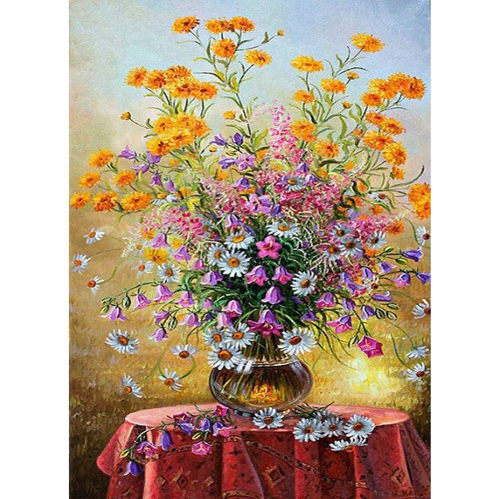 Reofrey Diamond Painting 5D Diamant Peinture Fleur DIY Cristal Strass Peinture,Plantes En Pot Plein Forage Broderie Artisanat Point De Croix Chambre Salon Décoration Murale 30x40cm