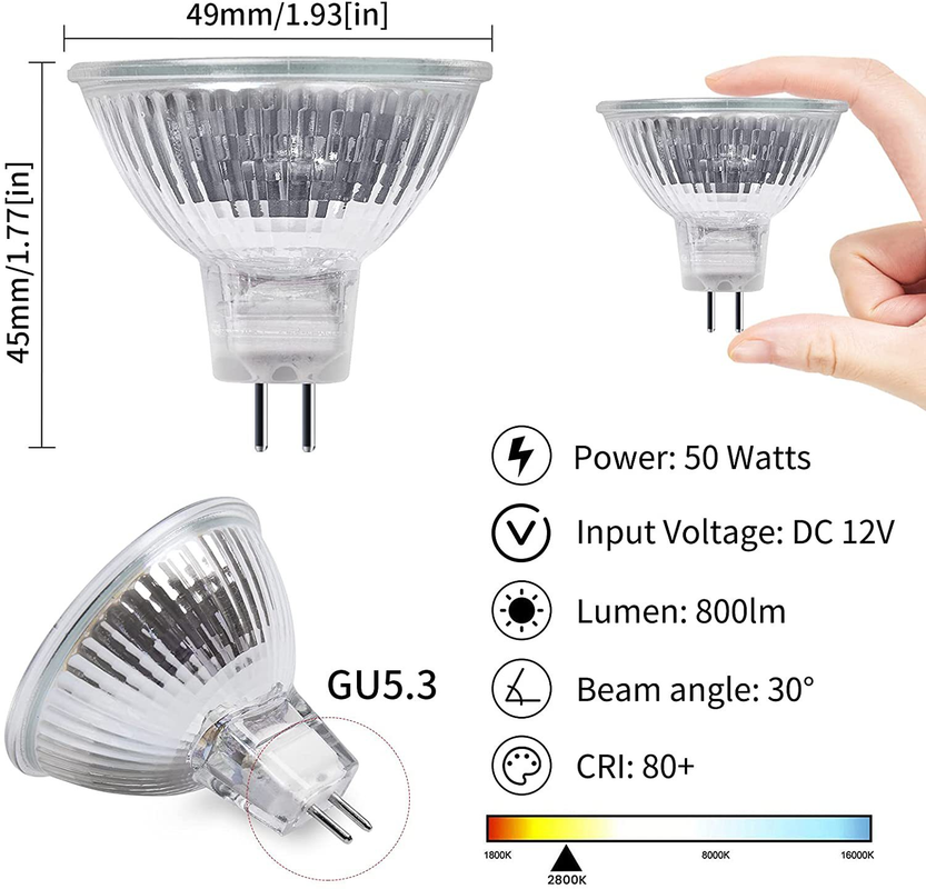 conçu pour la formation générale et à l'éclairage décoratif double par rapport à une durée de vie : lampes dimensions : diamètre : 51 mm longueur : /45 mm sockelabstand : gU 5,3 100 % produit original sous emballage d'origine / stock en livraison rapide &! Ampoule Dicuno Dimmable Ampoule Led Gu5.3 Mr16, Blanc Chaud 2700K, 12V, 5W Équivalent 50W Lampes Halog Nes 440lm Spot Pour Plafonnier 6 Pi Ces Spot Halogene Durée de vie : 2000h Ampoule Halogène Mr16 50 W Gu5.3 12 V Ampoule À Incandescence Blanc... OLEVOLT LED Ampoule MR16 GU5.3 5W Blanc Naturel 4000K Equivalent à 50W Ampoule Halogène, MR16 La catégorie GU5,3 est dédiée aux ampoules ayant le même culot. Ampoule MR16 GU5.3 12 V 35 W, intensité variable de 0 % à 100 %. Sans scintillement ni bruit. Autonomie de 2000 heures, bien supérieure à celle des produits similaires sur le marché. Lumière blanc chaud de 380 lumens. Suffisamment lumineuse pour un usage domestique. Faciles à installer, les ampoules halogènes MR16 blanc chaud conviennent à une grande variété de luminaires. Sans... Classe énergétique b : flux lumineux : 680lm puissance : 50 w durée de vie moyenne : 2000h classe d'efficacité énergétique : l'échelle de la classe d'efficacité énergétique s'étend de a (très efficace) à e (moins efficace) 53/kWh 1000h