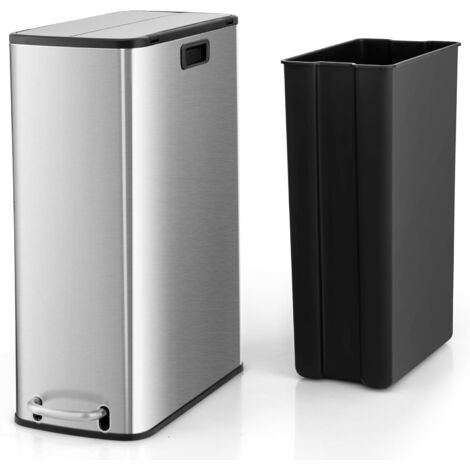 【Seau Intérieur Détachable】Le seau en PP facilite le changement de sacs poubelle tout en protégeant la coque extérieure contre les déversements et les taches. La poubelle peut être facilement contrôlée par la pédale. Poubelle Cuisine 50l COSTWAY Poubelle Cuisine 46 Litres En Acier Inox, Poubelle Poubelle Tri Selectif Changez facilement les sacs poubelle et protégez-vous contre les déversements avec son seau intérieur amovible. De plus, vous pouvez profiter d'une fermeture silencieuse du couvercle et d'une prévention des écrasements avec le système de fermeture douce. Poubelle rectangulaire à pédale 38L code J inox Le cadre durable en acier inoxydable à 3 couches garantit une résistance optimale aux empreintes digitales et une durabilité. Poubelle En Métal Inox 50 Litres Ouverture à Pédale - Poubelle - Sac... 【Couvercles à Ailes】Le design unique du couvercle en forme d'aile de la poubelle la rend idéale pour les zones à faible dégagement. Elle est équipée de poignées latérales qui vous permettent de la déplacer dans votre cuisine, salle de bains, salon, bureau, etc. Caractéristiques : La structure en acier inoxydable présente une conception à 3 couches Avec une conception à fermeture douce qui est silencieuse et beaucoup plus sûre Permet un fonctionnement mains libres grâce à la pédale pratique Les couvercles bien faits sont bien scellés pour bloquer les odeurs désagréables Poubelle en acier inoxydable polyvalente pour cuisine, salon et bureau Les poignées latérales extérieures rendent le déplacement plus pratique Dispose de pédales pratiques pour un fonctionnement mains libres La forme mince et gain de place s'adapte parfaitement dans n'importe quel coin Spécifications : Couleur : Argent Matériau : Acier inoxydable, PP Taille en position fermée : 52 x 26 x 68 cm (L x l x H) Hauteur en position ouverte : 80 cm Taille du seau intérieur : 40 x 22,5 x 60 cm (L x l x H) Taille des sacs poubelle adaptés ≥ 65 x 80 cm (L x l) Capacité maximale : 46L Poids Net : 7 kg Contenu de l'emballage : 1 x Poubelle en Acier Inoxydable caractéristiques : la structure en acier inoxydable présente une conception à 3 couches avec une conception à fermeture douce qui est silencieuse et beaucoup plus sûre permet un fonctionnement mains libres grâce à la pédale pratique les couvercles bien faits sont bien scellés pour bloquer les odeurs désagréables poubelle en acier... COSTWAY 46L Poubelle en inox, Poubelle de cuisine avec 2 couvercles & pédale, poignées & seau intérieur amovible, Poubelle à pédale 52 x 26 x 68 cm Vous pouvez retirer le seau via les bords découpé caché. Étant mince et polyvalente, cette poubelle avec poignées latérales est un ajout parfait à n'importe quelle pièce.