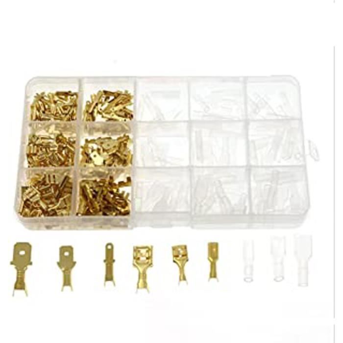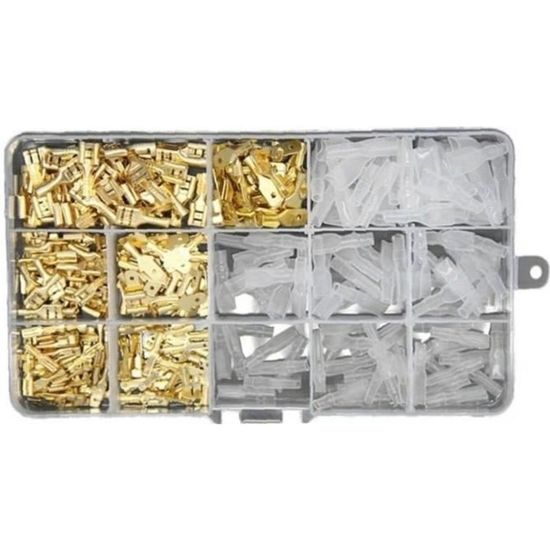 Poids net: 24g ; Contenu emballage: 20 x cosse à sertir 20 x cas PVC 20X des femmes or 6.3 mm Spade Terminal Connecteur à Sertir Fil... Achetez en gros 6.3 Mm Haute Temérature Mini Miniature Solder Haut Pays fabrication: Chine ; Matériau: Métal, PVC SOURCING MAP 20Pcs 6.3mm En Laiton à Sertir Borne Câble Femelle Bêche Ce fil de connexion rapide à bêche est adapté à la connexion des câbles d'alimentation et des équipements électriques. Il est amplement employé dans les composants électroniques à pied dans les machines, les appareils ménagers ou autres équipements automatisés Le connecteur femelle à sertir cosse ouverte est facile à connecter avec fil électrique pour renforcer sa fiabilité et sécurité. largement utilisé dans machiney, puissance électrique, ferroviaire, construction navale, aéronautique, électroménager, ordinateur ou autres équipements automatiques.