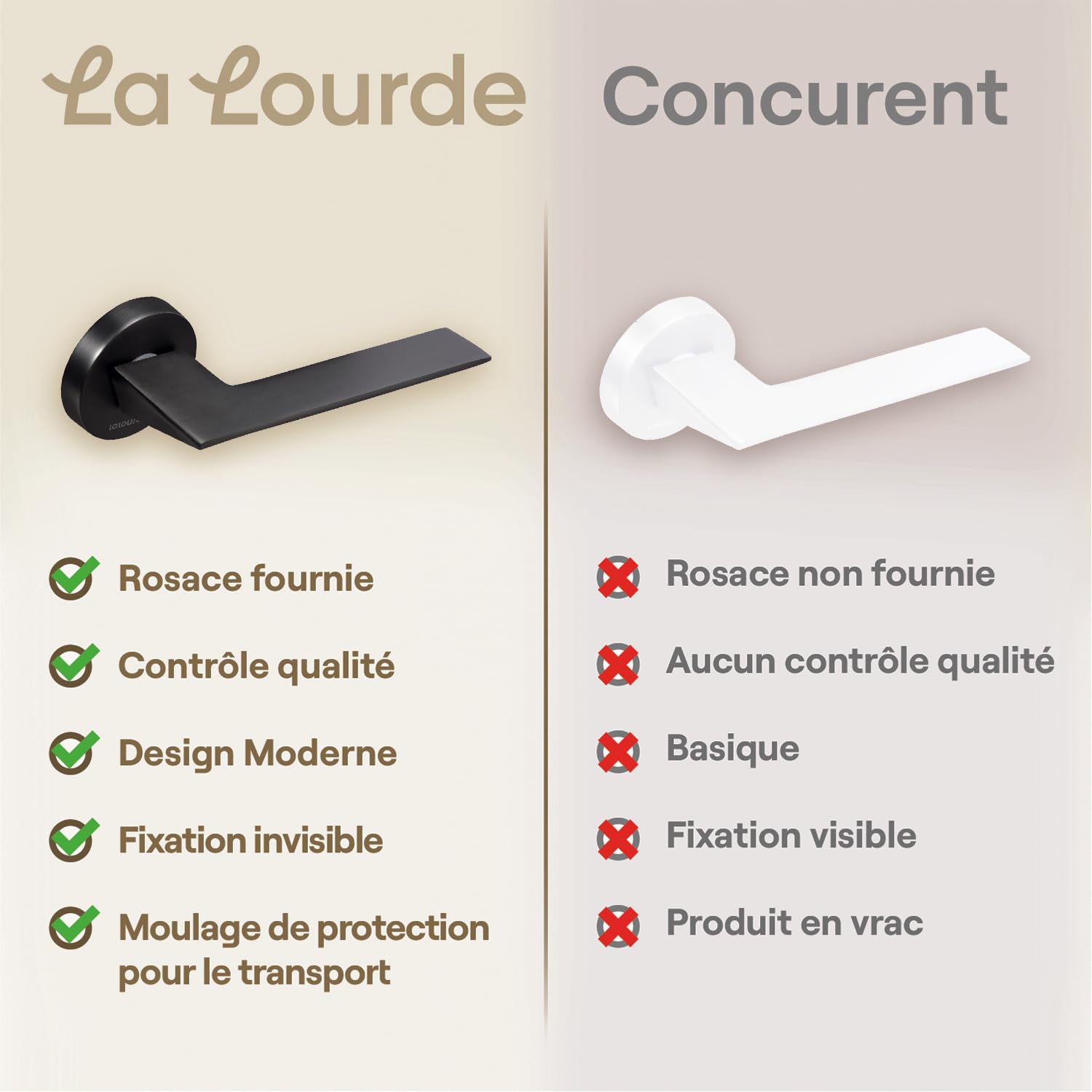 POIGNEE DE PORTE RONDE ET ELEGANTE : La poignée de porte intérieure Laurette allie la modernité d'une finition métallique brillante à l'authenticité du bois. POIGNEE FACILE A POSER : Fixez les rosaces sur la porte, puis insérez le carré dans la serrure avant d'y placer et visser la poignée à proprement parler. Elles sont robustes et durables, offrant une excellente résistance à l'usage quotidien. Serrure Porte La Lourde - Poignée De Porte Laurette - Alliage De Zinc Doré + Bois Poignee De Porte Exterieur Elles sont robustes et durables, offrant une excellente résistance à l'usage quotidien. Pince à Noyer en Alliage de Zinc, Casse-Noix Manuel, Outils d'ouverture de Pince Professionnels... POIGNEE DE LUXE : Les poignées de porte Laurette sont fabriquées en zinc de haute qualité. Livrées avec une rosace à clé, elles s'adaptent facilement aux portes françaises. Elle conçoit des accessoires de menuiserie alliant design de luxe et prix... Pour une protection optimale, chaque poignée en zinc est livrée avec une housse molletonnée. Apportez une touche intemporelle et de luxe à vos portes. la lourde Laurette Modèle Poignée Zinc avec Rosace Clé bois