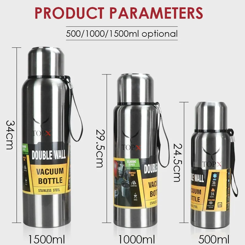 ACIER INOXYDABLE PREMIUM - Utilise de l'acier inoxydable 18/8 de haute qualité, exempt de BPA, de phtalates, de plomb ou d'autres substances toxiques, inodore et insipide. Gourde Inox Double Paroi | Theieres Du Monde Gourde Inox, 500-750-1000Ml, Bouteille D'Eau Acier Inoxydable, Gourde... UTILISATIONS POLYVALENTES - Notre gourde en acier inoxydable est parfaite pour une utilisation quotidienne, que ce soit au bureau, au sport ou en voyage. L'Insulated Water Bottle est le compagnon idéal pour tous ceux qui attachent de l'importance à la qualité, à la fonctionnalité et à la durabilité. La gourde en métal est robuste, durable et respectueuse de l'environnement, ce qui en fait le choix idéal pour les consommateurs soucieux de l'environnement. Profitez à tout moment de l'arôme complet de votre boisson préférée, que ce soit du café, du thé ou de l'eau rafraîchissante, grâce à notre bouteille d'eau en acier inoxydable. 100 % étanche, elle résiste aux secousses et aux fuites. TOP ISOLATION - Grâce à l'isolation sous vide à double paroi, les boissons restent chaudes jusqu'à 12 heures et les boissons froides restent fraîches jusqu'à 24 heures. L'intérieur électropoli permet à votre gobelet de rester impeccable et de ne pas dégager de saveurs indésirables, pour que vous ayez toujours une boisson propre ! Les promo du moment Quels produits nous proposons-vous à petit prix en ce moment ? Promotion sur les gourdes inox anti-fuite et isothermes... Gourde 1l Gourde Inox Isotherme 500Ml 750Ml 1000Ml Bouteille D'Eau Acier Inoxydable Avec Isolation Par Gourde Adulte Convient également aux boissons gazeuses.