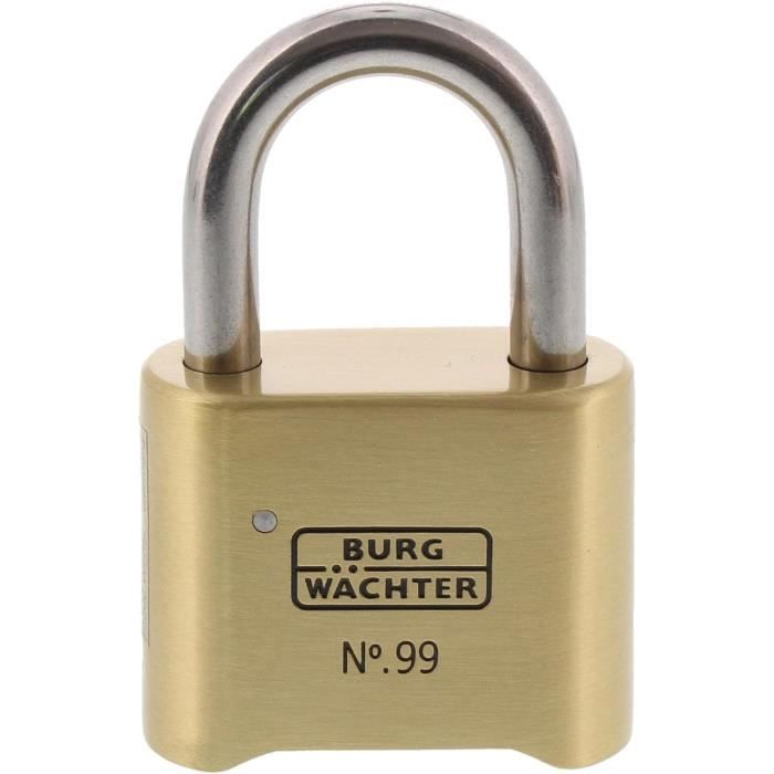 Verrouillage sécurisé des armoires, portails, conteneurs, grilles roulantes et distributeurs automatiques : Cadenas stable avec anse de 6,5 mm d'épaisseur - Sécurité optimale : Protection anti-pincement, Plus de sécurité contre le vol grâce à un renforcement spécial de la manille - Mécanisme de verrouillage de haute technologie : Avec 2 clés réversibles, Mécanisme intérieur en acier inoxydable, Protection contre le vol, Grand nombre de variures différentes - Produit 100% allemand : Corps en laiton massif, Également disponible avec clavette Sécurité optimale : Protection anti-pincement, Plus de sécurité contre le vol grâce à un renforcement spécial de la manille Produit 100% allemand : Corps en laiton massif, Également disponible avec clavette Verrouillage sécurisé des armoires, portails, conteneurs, grilles roulantes et distributeurs automatiques : Cadenas stable avec anse de 6,5 mm d'épaisseur Le corps massif en laiton et le verrouillage doublement sécurisé en acier trempé font du cadenas à cylindre BURG-WÄCHTER Boccia 450 30 4 SB un produit... Cadenas Burg Wächter Prix Cadenas Clé Burg Wächter - Cadenas Boccia - 450 30 SB Cadenas Avec Cadenas Grande Anse Cadenas A Cle Casier College BURG-WÄCHTER Cadenas à Cylindre