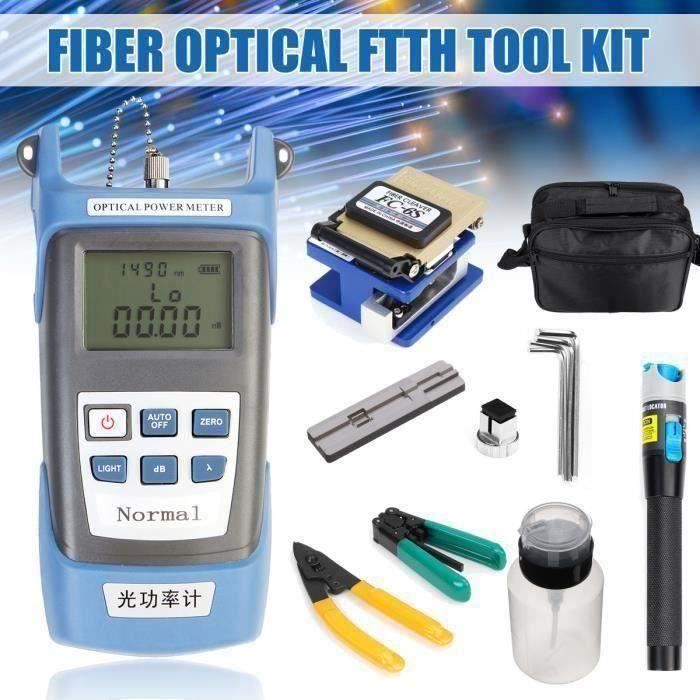 Denudeur Cable Optique Fibre FTTH Outil Kit Couperet De Fibre Dtecteur De Puissance Connecteur Fibre Optique Caractéristiques : Sac à outils de grande capacité, résistant et solide, épaissie et imperméable, avec une bonne durée de vie. Le fixateur est utilisé pour fabriquer des connecteurs à froid, adaptés à différentes spécifications de joint froid, facile à utiliser, qui améliorent l'efficacité du travail. 12 Pièces Ftth Kit D'Outils À Fibers Optiques Avec Fibra Optica Ce kit d’outils à fermeture à froid à fibre optique comprend un capteur de puissance optique à batterie sèche, un stylo à lumière rouge, un décapant à fibres à 3 trous, un décapant de fil, un fixateur, un couperet à fibre, une bouteille, un sac à stylo à lumière rouge, des cordes, des noyaux en céramique 2pcs, une tête de stylo rouge 1pcs (Etre prêt), sac de rangement de... Dimensions du colis : 240 x 180 x 100 mm. Contenu du colis : 1 kit d'outils de fermeture à froid en fibre optique Poids de l'emballage : 1100 g. Batterie : pile AA (non incluse). Spécifications: Nom : kit d'outils de fermeture à froid en fibre optique Matériaux : métal + plastique. Achetez Ftth Fibre Optique Fusion Splicer Cliveuse Lcd écran Scientific Calibrage Auto au prix le plus bas, livraison en 2 jours, retour sous 30 jours. Stylo à lumière rouge en métal avec poignée antidérapante et source lumineuse puissante, design avec rotation à 360°, interfaces universelles de 2,5 mm.