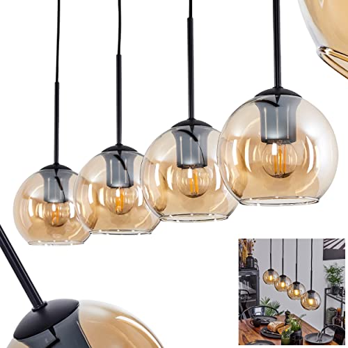Suspension Verre Lampe à Suspendre Koyoto, Lampe à Suspendre En Métal/verre En Noir/chrome, Lampe à 4 Flammes En Design Vintage/rétro Avec Abat-jour En Verre ( 15 Cm), Hauteur Max. 147,5 Cm, 4