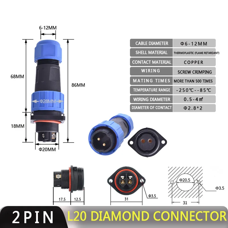 Conseils : En tant que fabricant professionnel de connecteurs et de câbles, nous produisons et vendons des câbles et des connecteurs économiques. Nos produits et nos services méritent votre confiance et répondent à vos besoins. Type:Série HP20, connecteur étanche;Modèle:Connecteur 20mm monté sur panneau;Degré d'étanchéité:IP67;Connecteur aéronautique + femelle, IP67 étanche, push-pull, connexion soudée, connecteur de câble aéronautique avec capuchon. Ce connecteur s'adapte à deux tailles de pinces (1-12MM), qui peuvent être utilisées en fonction des spécifications du câble. ZBLZGP Aviation WS16 Connecteur Mâle Femelle Prise étanche Aviation Fil électrique Connecteur De Aviation Male Plug and Female Jack WF20-12 pin Right Angle TU/Z Waterpro Matériau d'insertion : PPS thermoplastique température max 260℃;Matériau de contact : laiton avec revêtement doré;Connexion : soudure;Cycles d'insertion : >500 fois;Plage de température : -25~+85℃.