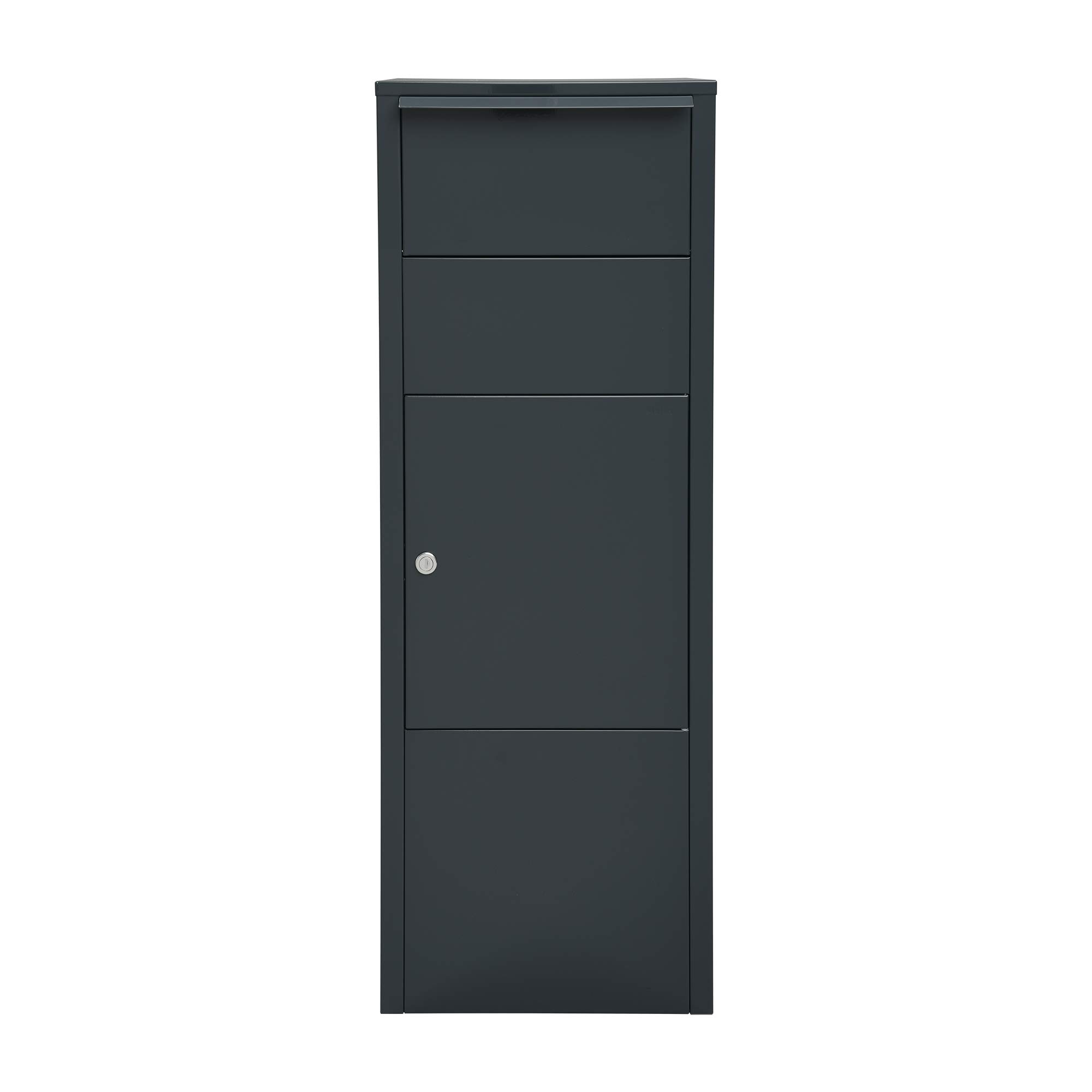 MEFA Hazel 477 Boîte aux lettres simple pour de grandes quantités de courrier et de colis. Boîte aux lettres MEFA en acier revêtu par poudre lxhxp 385/1043/230 mm Hazel 477M en couleur RAL au choix - Luxembourg Boîte aux lettres de style européen à fente étroite en acier inoxydable... La boîte aux lettres classique est fabriquée en acier galvanisé revêtu par pulvérisation et est donc durable et robuste Couleur : gris anthracite brillant 7016., Contenu : 1 boîte aux lettres. Boîte aux lettres spacieuse avec fente spéciale pour le courrier et les colis. Serrure : serrure de sécurité MEFA. Grâce à la glissière astucieuse, plusieurs colis peuvent être livrés à la fois Grâce à la glissière astucieuse, plusieurs colis peuvent être livrés à la fois. Grâce à ses dimensions, la boîte aux lettres convient également pour une grande quantité de courrier et de colis Principaux points forts · Matériau. Acier galvanisé revêtu par pulvérisation · Couleur. Gris · Fonctionnalités de sécurité incluses. Verrouillable · Marque. MEFA ME-FA MEFA Hazel 477 477550M Boîte Aux Lettres Avec Fente L'étagère intermédiaire dans la boîte peut être retirée et ainsi augmenter le volume si nécessaire