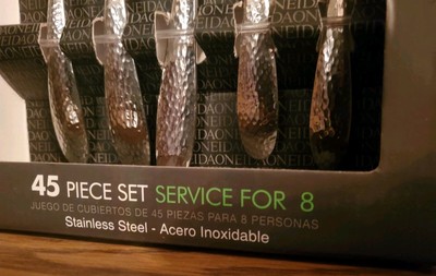 45 pièces jeu de couverts avec le service pour 8., Comprend 8 chacun : fourchette à salade, dîner fourchette, dîner couteau, cuillère à soupe et cuillère à café. Tibet Serving Oneida Apollonia - Juego De Cubiertos De 45 Piezas, Servicio Para 8 - Yaxa Colom Sambre Serving ; la douceur durable et élégante finition martelée de couverts oneida S reyna lui confèrent une sensation organique pour une forme conique classique ; passe au lave-vaisselle, n'a jamais besoin de polissage ; garantie à vie limitée. Également inclus : Cuillère, cuillère, fourchette à viande, couteau à beurre et le sucre cuillère percé, 18/0 en acier inoxydable.