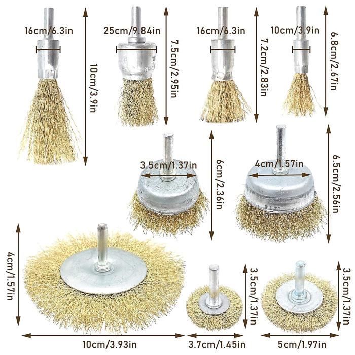 Ce 115mm roue noués à la brosse est fabriqué pour être utilisé avec les meuleuses d'angle, 110v ou 240v avec 22., 2mm Arbor trou. Peut être utilisé avec les meuleuses d'angle et 110V 240V , monoroue Brosse métallique rotative plate - KREATOR - 100 mm - Acier - Bricolage Grâce à sa forme ronde et à son fil d'acier torsadé, elle offre une puissance d'enlèvement agressive, idéale pour les travaux de nettoyage lourds tels que le dérouillage, le polissage, le décapage ou le ponçage du bois et du métal Retirez les surfaces de peinture et fortement corrodées Brosse Pour Meuleuse 125mm Brosse Métallique 65mm Fil Ondule Avec Alésage M14 > Consommables > Abrasif Brosse Métallique Pour Meuleuse il sera rapidement nettoyer et éliminer la rouille pour laisser un fini métallique plus pur sur la plupart des surfaces pour un look naturel ou pour utilisation avant peinture. Caractéristiques techniques adapté pour une utilisation avec 110V et 240V les meuleuses d'angle Type de montage (Arbour) 22., 2mm diamètre : 115mm fil noué rigide Vitesse Max : 12500tr/min , type plat brosse roue noués fil noué de profondeur : 19mm, Diamètre 115mm , Bore: 22., 2mm Attention : Porter des lunettes de protection lors de l'utilisation de ce produit. Diamètre : 115 mm; Alésage : 22,2 mm; Enlève la peinture et les surfaces fortement corrodées; Convient pour une utilisation avec des meuleuses d'angle 110 V...