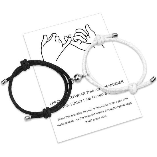 💕 Occasions: Saint-Valentin, mariage, anniversaire, anniversaire, Noël, Thanksgiving, remise des diplômes ou toute autre occasion. Et vous recevrez une carte mesage, 2 bracelets tressés dans un joli sac cadeau en velours. Il peut être facilement ajusté pour s'adapter à différentes tailles de poignet, offrant confort et commodité. 💕Design unique - Une balle d'attraction mutuelle signifie des vœux d'amour éternel. Bracelet en corde tressée durable réglable de 6,3 à 13 pour les femmes ou les hommes, convient à tous les poignets. Cadeau Personnalisé Homme Magnétique Couples Bracelet Ensemble Attraction Mutuelle Corde À La Lingerie Sexy Femme Coquine Hot Conception de charme magnétique, attirez-vous les uns les autres lorsqu'ils sont fermés, symbolisant que nous ne nous séparerons jamais. Bracelet magnétique pour couples assortis - Vœux d'amour éternel... Rouge - Bracelet D'attraction Magnétique En Alliage Pour Couple BRACELET - GOURMETTE - JONC-Noir Bracelets magnétiques pour couple... Bracelet de couple Emballage individuel pour un rangement facile, livré dans un élégant sac de velours pour bijoux . Cadeau de couple/d'amitié pour amoureux/meilleur ami - Ces bracelets sont des cadeaux polyvalents adaptés aux couples ou aux amis. Qu'ils soient offerts à un partenaire romantique ou à un meilleur ami, les bracelets assortis symbolisent une connexion profonde et servent de geste sincère d'amour, d'amitié et d'affection. Grand cadeau pour votre petit ami, petite amie, mari, femme, mère, fils, fille, soeurs et amis. 💕Meilleur cadeau - Le bracelet de couple sera le meilleur cadeau pour homme / femme / amoureux / couple pour la Saint-Valentin, l'anniversaire et l'anniversaire, fait un cadeau merveilleux pour toutes les occasions.