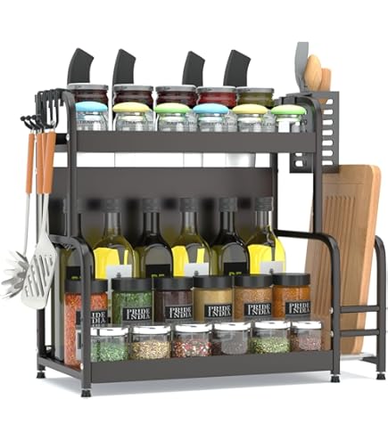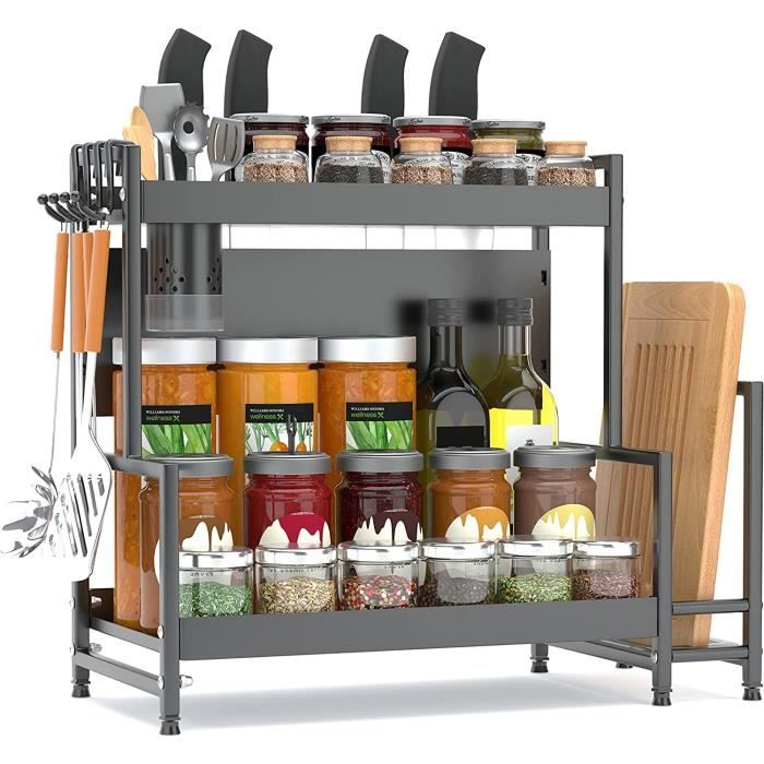 Séché à l'air et respirant Évite de laisser des saletés derrière soi Spécifications : Nom du produit : Porte-épices L'organisateur d'étagères à épices est idéal pour les réfrigérateurs, les fours en fer et autres surfaces métalliques, garde les épices à portée de main et garde votre cuisine organisée Poids : 2 étages : 1630g ; 3 étages : 2150g, Matériau : Métal, Couleur : Noir, Vert Matériaux de haute qualité/polissage fin Résiste aux rayures et aux éraflures, préserve l'esthétique Porte-accessoires de cuisine assorti pour placer les couteaux, fourchettes, baguettes, planches à découper, etc. 1 x Support pour planche à découper, 1 x Porte-baguettes Étagère De Four À Micro-Ondes Étagère De Cuiseur À Riz Support De Porte-épices stable - Avec des pieds antidérapants, le porte-épices est plus stable. Imperméable, résistant à la corrosion, anti-perméation et très robuste. Garde-corps anti-chute Garde-corps pour empêcher les objets de tomber Étagères De Rangement De Cuisine, Étagère À Épices À 3 Couches Porte-épices stable - Avec des pieds antidérapants, le porte-épices est plus stable. 4pc crochets amovibles qui peuvent être plus pratiques pour accrocher des ustensiles de cuisine, des serviettes ou des chiffons. [Le paquet contient]1 x support pour épices, 1 x support p... Organisation multifonctionnelle de la cuisine - L'étagère à épices est parfaite pour ranger les épices, les herbes, les bocaux, les sachets de thé, les céréales, les conserves, le sel, le poivre, les huiles, les condiments, les sauces, etc. Support plus épais/Maillage en plis plus épais Matériau épais, stable et résistant aux charges