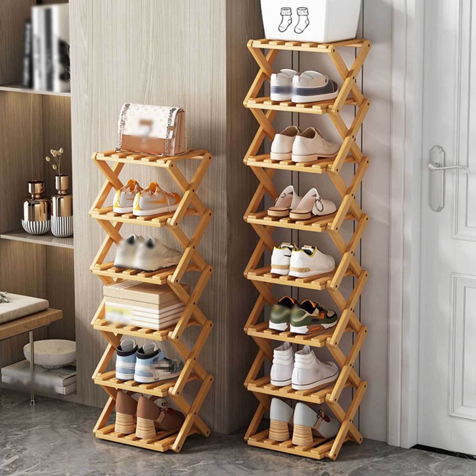 Maximisez l'espace de rangement vertical pour les petits coins : la dimension de 45,7 cm de large x 28 cm de profondeur x 114,8 cm de haut en fait une taille parfaite pour une petite porte d'entrée, un dressing et une entrée. Poids de l'article : 9 kg. Étagère à chaussures 7 étages en bois - 56x28x110cm Wadiga - Mr Scandinave À propos de cet article Maximisez l'espace de rangement vertical pour les petits coins : la dimension de 45,7 cm de large x 28 cm de profondeur x 114,8 cm de haut en fait une taille parfaite pour une petite porte d'entrée, un dressing et une entrée. Vous pouvez également omettre les étagères pour s'adapter à des chaussures et des bottes spécifiques selon votre demande. 7 étagères... Grande étagère à chaussures de différentes hauteurs : conçue avec différentes hauteurs d'étagères, les deux couches inférieures mesurent 19 cm de haut, parfait pour les talons hauts. Range Chaussures Bois Étagère à Chaussures En Bois à 7 Niveaux, Meuble à Chaussures à Double étagère à Chaussures 2 Niveaux Vous pouvez également omettre les étagères pour s'adapter à des chaussures et des bottes spécifiques selon votre demande. Contrairement aux étagères à chaussures en métal rigide, celle-ci est spécialement conçue avec un aspect de bois pour être élégante et assez naturelle pour s'adapter à toute décoration d'intérieur. 7 étagères ouvertes pour organiser et désencombrer : les doubles rangées de sept étagères ouvertes offrent un grand espace de rangement pour les chaussures de manière organisée pour rendre les chaussures claires en un coup d'œil. 7 étagères ouvertes pour organiser et désencombrer : les doubles rangées de sept étagères ouvertes offrent un grand espace de rangement pour les chaussures de manière organisée pour rendre les chaussures claires en un coup d'œil. Homefort Étagère à chaussures à 7 niveaux en bois, double...