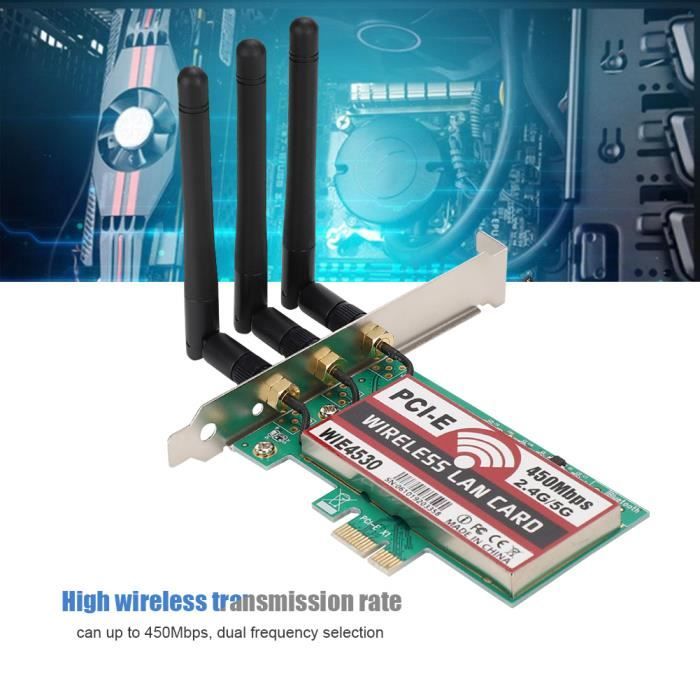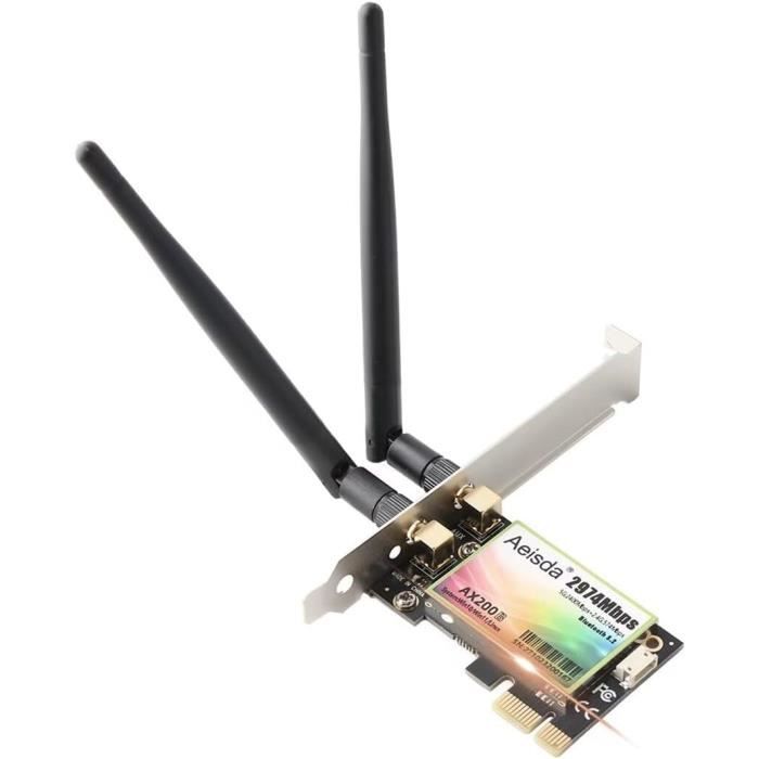 Spécification:Type d'article: Carte Wi-Fi PCIEMatériel: PCB: 4., 0Fréquence: 2,4GHz 5,0GHz à double fréquenceVitesse: 1200Mbps (2,4 GHz 300Mbps, 5GHz 867Mbps)Prise en charge du système: pour 7 8 10Équipement applicable: ordinateur avec interface PCI Express (PCIE 1X 4X 16X Slot)Comment utiliser:Plug and PlayListe des colis:1 x carte réseau2 x antenne1 x câble adaptateur1 x vis Double bande : famille de réseaux sans fil IEEE 802., 11ac, adaptateurs fonctionnant à des fréquences de 2,4 GHz et 5,0 GHz. Haute vitesse : le débit peut atteindre 1200 Mbps (2,4 GHz 300 Mbps, 5 GHz 867 Mbps) et prend en charge 4., 0., Portable : l'adaptateur réseau sans fil de bureau est plug and play, compact et facile à transporter. Haute vitesse : le débit peut atteindre 1200 Mbps (2,4 GHz 300 Mbps, 5 GHz 867 Mbps) et prend en charge 4.0. Portable Mini PCIE Carte MC-AC7265, Carte sans Fil Double Bande 2.4G/5G Bluetooth WiFi Carte Réseau, pour Ordinateur Portable PC 8 10. 4,5 sur 5 étoiles 62. 5 offres à... Wifi Pcie 5374Mbps Wi-Fi 6E PCIE Adaptateur WiFi Sans Fil Bluetooth 5.2 -Bande 2.4G-5G-6Ghz Carte PCI Adaptateur Wifi Cdiscount Carte sans Fil, Carte Mini Bluetooth WiFi 2 en 1, Carte sans Fil 2.4G pour Emplacement pour Carte Mini PCI-E, Carte de réseau Informatique Interne