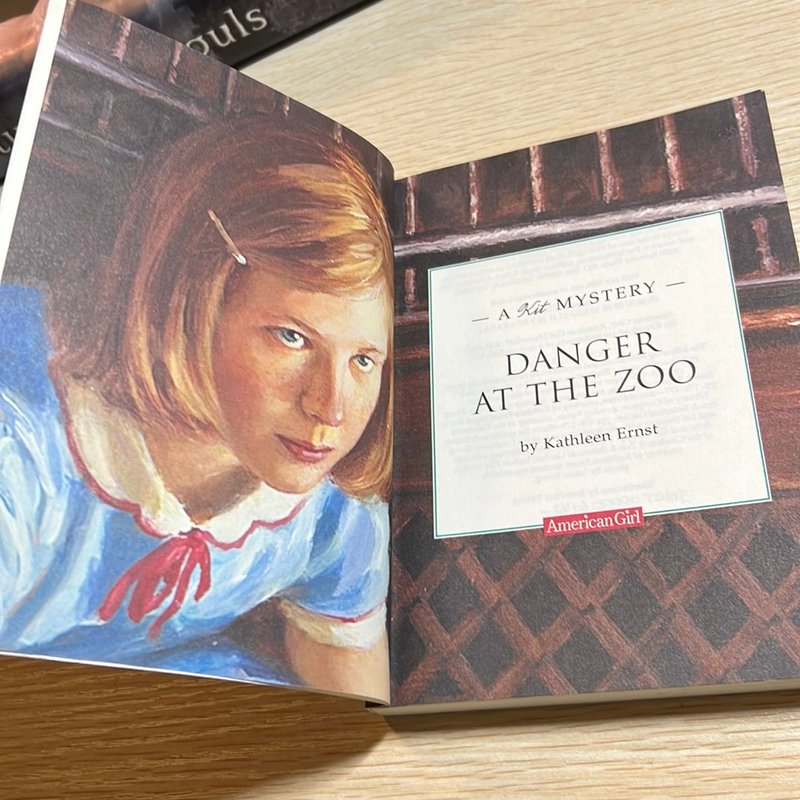 American Girl Book A Kit Mystery Danger At The Zoo & Midnight In Lonesome Hollow 9781584859895 Danger at the Zoo : A Kit Mystery by Kathleen Ernst (2005, Trade Paperback). Very good condition- don't know if it was ever read but has some marks on... Danger At The Zoo: A Kit Mystery (American Girls: Kit Kit lands a summer job writing a children's column for her local newspaper. She decides to look for story ideas at the Cincinnati Zoo, where her friend Stirling works as a guide and her old friend Will, the hobo, has a job cleaning cages