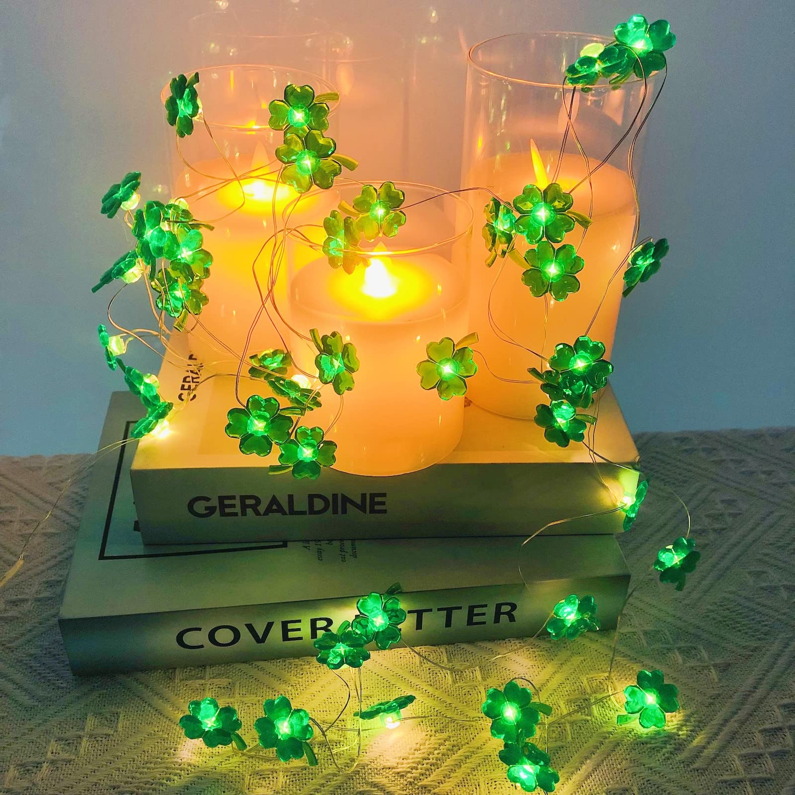 Guirlande lumineuse pour la Saint-Patrick : avec un fil de cuivre plaqué argent de 4 m et 40 ampoules LED de couleur verte, notre guirlande lumineuse trèfle à... Ces belles guirlandes lumineuses peuvent décorer n'importe quelle occasion, comme Noël, fête d'anniversaire, maison, mariage, fête et autres occasions. Contenu : Contenu : 1 guirlande lumineuse. Guirlande Lumineuse Feuilles d'Automne en Acrylique Guirlande Lumineuse Trèfle à 4 Feuilles 50 LED Lumières Décoratives Taille : chaque guirlande mesure environ 3 mètres de long avec 40 LED dessus, et chaque lumière LED est recouverte d'un mini trèfle, agréable pour rendre l'atmosphère heureuse de la Saint-Patrick plus intense dans la maison. Télécommande : les guirlandes lumineuses ont des modes d'arrimage (clignotant, rapide, lent, respiration, rythme, onde, puissant) avec télécommande à distance de 5 mètres. Large application : non seulement il peut être utilisé pour décorer le jour de la Saint-Patrick. Décoration de la Saint-Patrick : ces guirlandes lumineuses vertes en forme de trèfle à quatre feuilles sont idéales pour les fêtes de St Patrick, un excellent moyen de créer une atmosphère joyeuse à votre maison, lieu de travail ou salle de classe, laissant une impression profonde sur vous et vos familles et amis. Il peut être facilement plié et façonné autour des plantes, panneaux, meubles et presque tout le reste. Guirlandes Solaires Trèfle à Quatre Feuilles - Lumières LED Vertes Étanches pour la Saint-Patrick | Décorations de Jardin, Allée et Pelouse, Éclairage Solaire... Contenu : 1 guirlande lumineuse en forme de lapin.