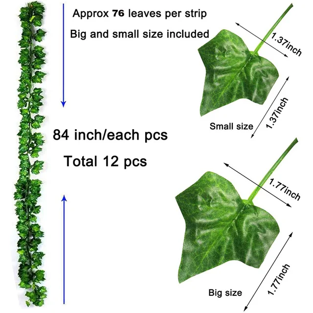 Our eyes are sensitive to green color, so when you decorate items in green leaves ribbon, which can bring leisure time and beauty impression to you. Fabrication haut de gamme pour un rendu plus vrai que nature. 5 m de feuilles de vigne verte artificielles, guirlande de When you use the green leaves ribbon to decorate your bedding room, its green color can brighten your eyes, let you feel so relaxed like being in nature, relaxing your eyes for a long time. Kalolary Guirlande de lierre artificiel, feuilles de vigne, plantes de... Guirlande Automne Feuilles Ruban De 40 M De Long - Vert - Feuilles De Vigne Artificielles Bananier Artificiel Natural Looking : The artificial green leaves ribbon is processed by imprinting technology, with bright color, clear leaf lines, smooth surface, which is full of vitality, very similar to real vines. Eye-catching : This artificial vines looks pretty as real green leaves, but do not wither like real leaves.
