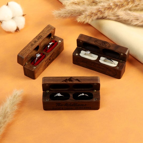 Boîte à alliances personnalisée avec nom, Boîte à bagues de 【Charme vintage 】 ajoutez une touche d'élégance intemporelle à votre cérémonie de mariage ou à votre demande en mariage avec cette boîte à bagues carrée en bois d'inspiration vintage. Boîte à bagues en bois à 2 fentes, boîte porte-bague, organisateur quotidien de bijoux B ; Livraison · 1,20€ ; Livraison : nov. 29 - déc. 25 ; Paiements sûrs · Nous... Boite Pour Bague En Velours Boîte à Bagues Pour Cérémonie De Mariage Boîte à Bijoux Boîte à Boite Alliance Mariage Ce coffret à bijoux en bois élégant transforme chaque ouverture en moment privilégié, révélant vos trésors dans un cadre raffiné qui préserve leur éclat naturel 【Double capacité de bague】cette boîte à bijoux dispose de deux fentes, vous permettant de présenter et de protéger une paire de bagues dans un seul étui compact.