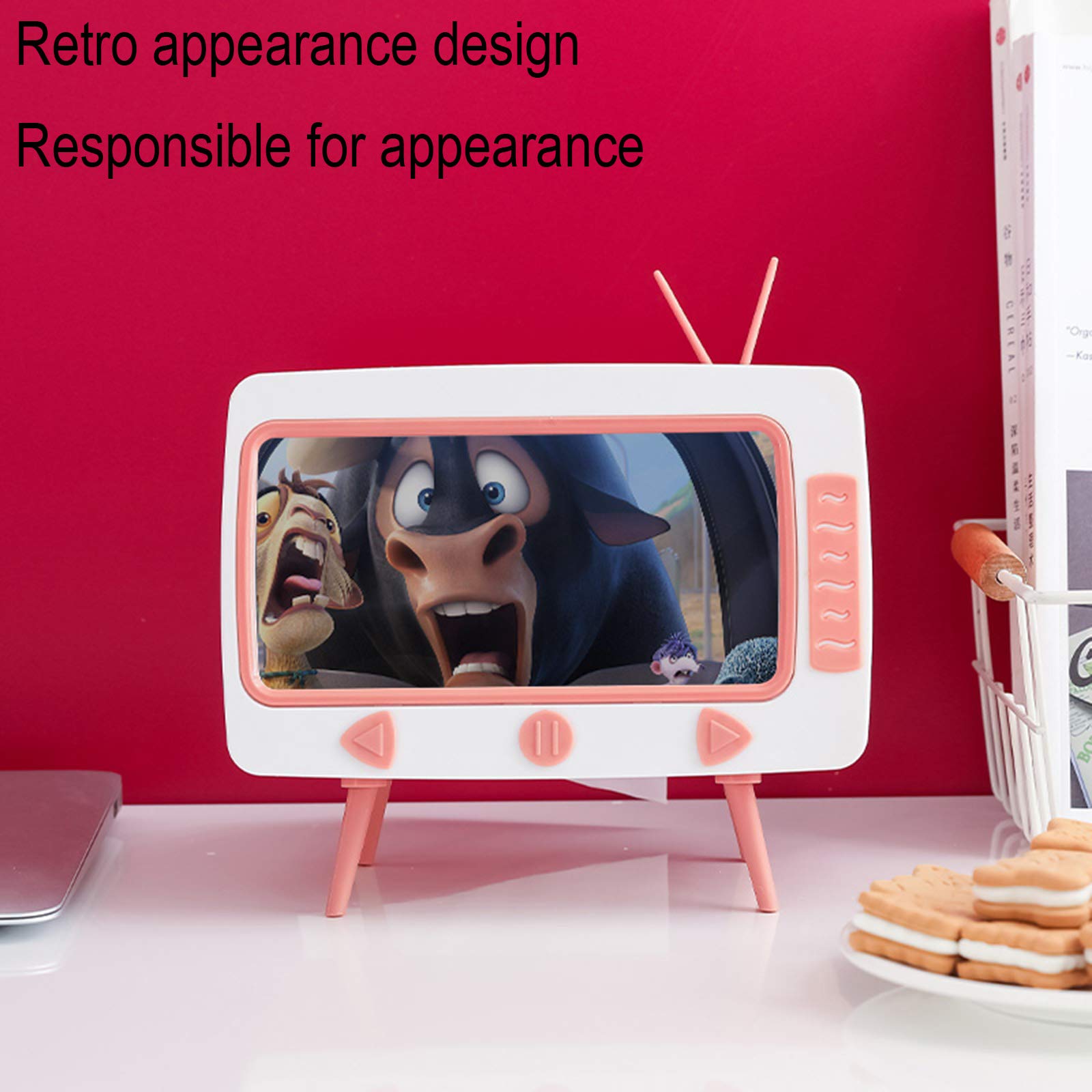 Les pieds du meuble TV sont amovibles, et le design du pied haut est stable et ne glisse pas, vous donnant un sentiment de sécurité stable. Caractéristiques : 1., Grande fente pour papier essuie-tout, la plupart des papiers et rouleaux de papier solide peuvent être placés., 2., Design avec fente pour cartes, téléphone portable intégré : plus facile pour libérer vos mains et regarder des vidéos., 3., Le design est simple et peut être adapté de manière flexible à divers environnements domestiques. Combinez la fonction de support de téléphone portable et de boîte à mouchoirs pour économiser de l'espace. Multifonction : vous permet de passer moins de temps à chercher ce dont vous avez besoin et plus de temps à vous concentrer sur ce qui compte Dimensions du produit : 19 x 16,4 x 11 cm. Matériau : ABS + polypropylène. Large gamme d'utilisations : la boîte de rangement multifonction peut être utilisée comme boîte de rangement de bureau, couvercle de boîte à mouchoirs, rangement de télécommande, etc. Couleur : vert, rose, jaune. BestAlice Support de téléphone 2 en 1 rétro pour télévision Design TV créatif : le support de boîte à mouchoirs avec design créatif en forme de TV est mignon et rétro, très innovant et tendance. Boîte à mouchoirs en forme de TV avec éléments rétro, parfaite pour votre salon et vitrine. Robuste et durable : la grande fente pour serviette en papier mesure 16,4 x 11 x 19 cm, étui rigide en plastique coloré, léger et facile à nettoyer. BestAlice Support Rétro 2 En 1 Pour Téléphone TV, Boîte à Mouchoirs Support 2 en 1 pour mouchoirs et téléphone portable : il s'agit d'une boîte à mouchoirs avec fente créative pour téléphone portable, peut également être... Créez la sensation de regarder un film pour vous. Peut contenir la plupart des boîtes de mouchoirs rectangulaires standard et même extra larges et des piles de serviettes ou de mouchoirs personnels et fonctionne avec tous les téléphones.