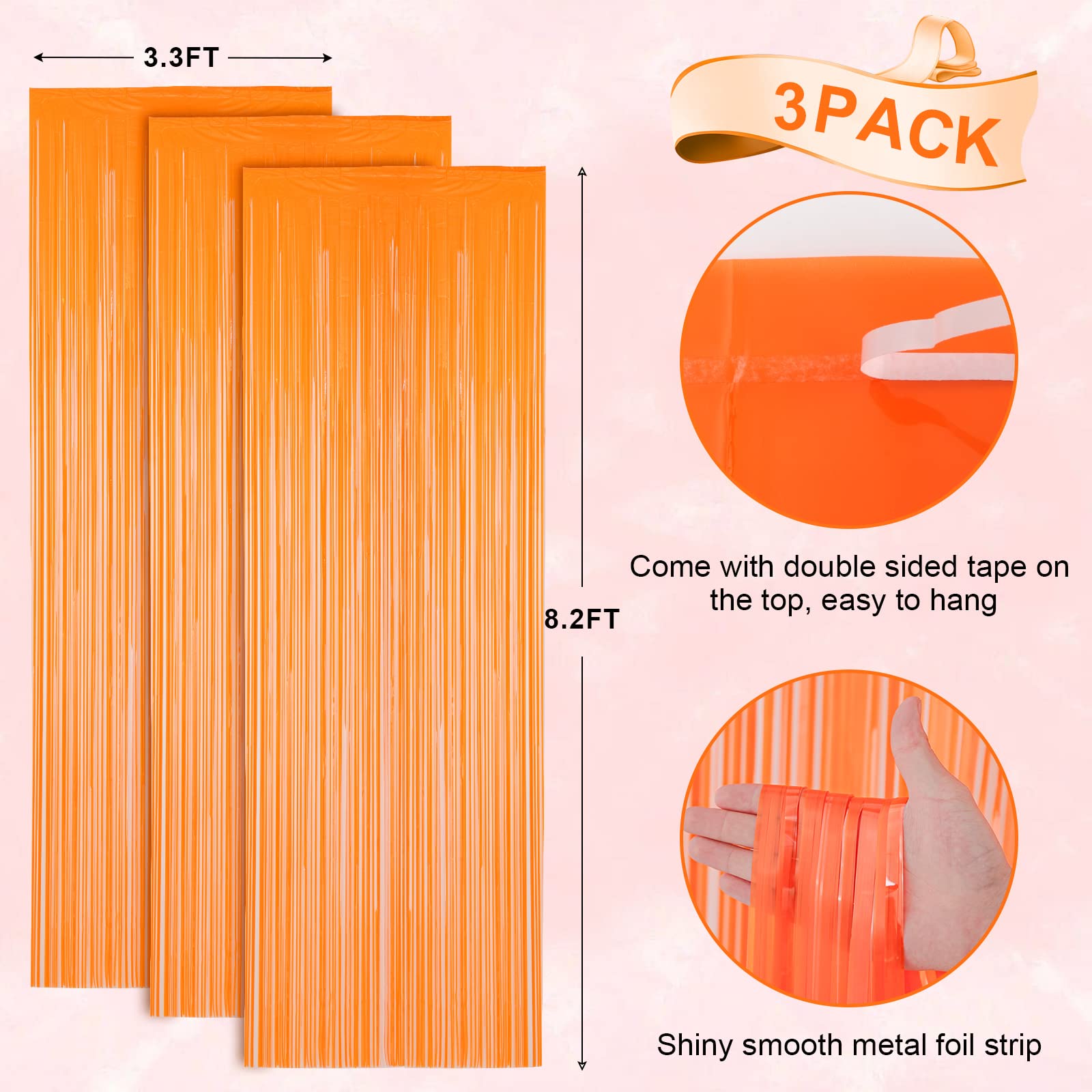 Applications : fournitures de fête d'anniversaire fluo, toile de fond pour streamer en direct, toile de fond diffusée, toile de fond de table de dessert, toile de fond de scène, toile de fond disco, etc. Décorations de fête fluo : nos rideaux à franges fluorescents uniques en feuille d'aluminium sont la toile de fond parfaite pour les décorations de fête d'anniversaire fluo, les décorations de fête d'enterrement de vie de jeune fille et la décoration d'intérieur. Nos décorations de fête néon de haute qualité sont robustes, incassables et peuvent être utilisées pendant une longue période. Ce type de rideau est idéal pour créer une ambiance festive et dynamique dans votre intérieur. Que ce soit pour une fête, une soirée à thème ou simplement pour apporter une touche de glamour à votre décoration, le rideau métallique à franges est un choix parfait Couleur. Macaron fluorescent orange, jaune et fuschia · Matériau. Feuille d'aluminium · Composants inclus. Lot de 3 rideaux à franges en aluminium · Marque. Mega... Rideau Fringe Lot De 3 Rideaux En Aluminium À Franges De 1 M X 3 M Soirée Fluo Ce sont des rideaux à franges légers et durables. Mega-L Lot de 2 jupes de table phosphorescentes à franges en Vous serez étonné de l'atmosphère colorée et de la vue qu'ils créent. Facile à appliquer : retirez le ruban adhésif double face, puis collez le rideau à franges phosphorescent sur le dessus de l'endroit souhaité, adapté pour la porte, la fenêtre, le mur, le salon, la table de dessert et les décorations de fond de scène. Nombreuses utilisations : ces rideaux à franges phosphorescents en feuille d'aluminium fluo sont parfaits pour les fêtes d'anniversaire fluo, les toiles de fond de table de dessert, les toiles de fond de scène, les toiles de fond disco, les toiles de fond de bar, la décoration de bureau, la décoration de la maison, les décorations de fête fierté, les décorations de salle de classe, etc.