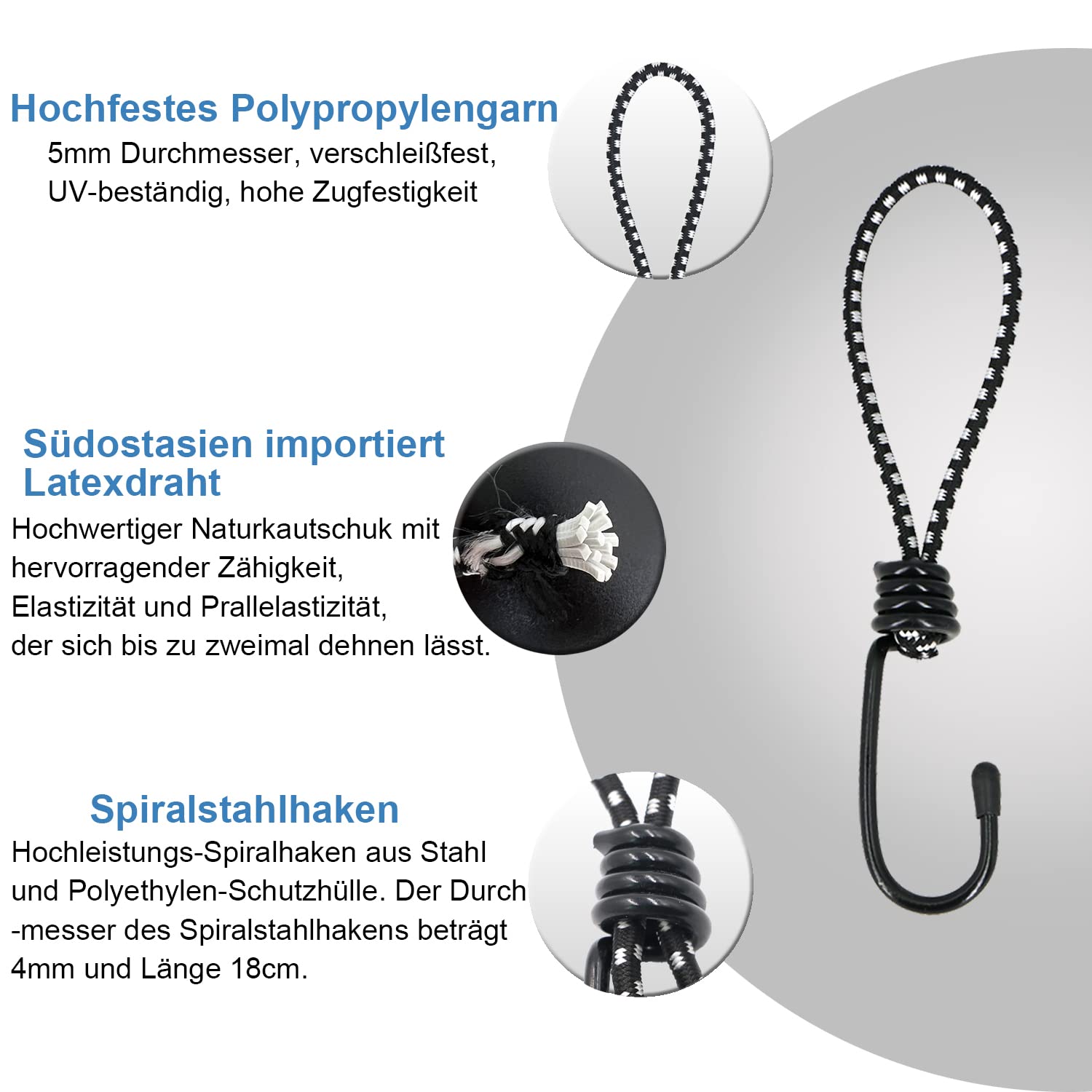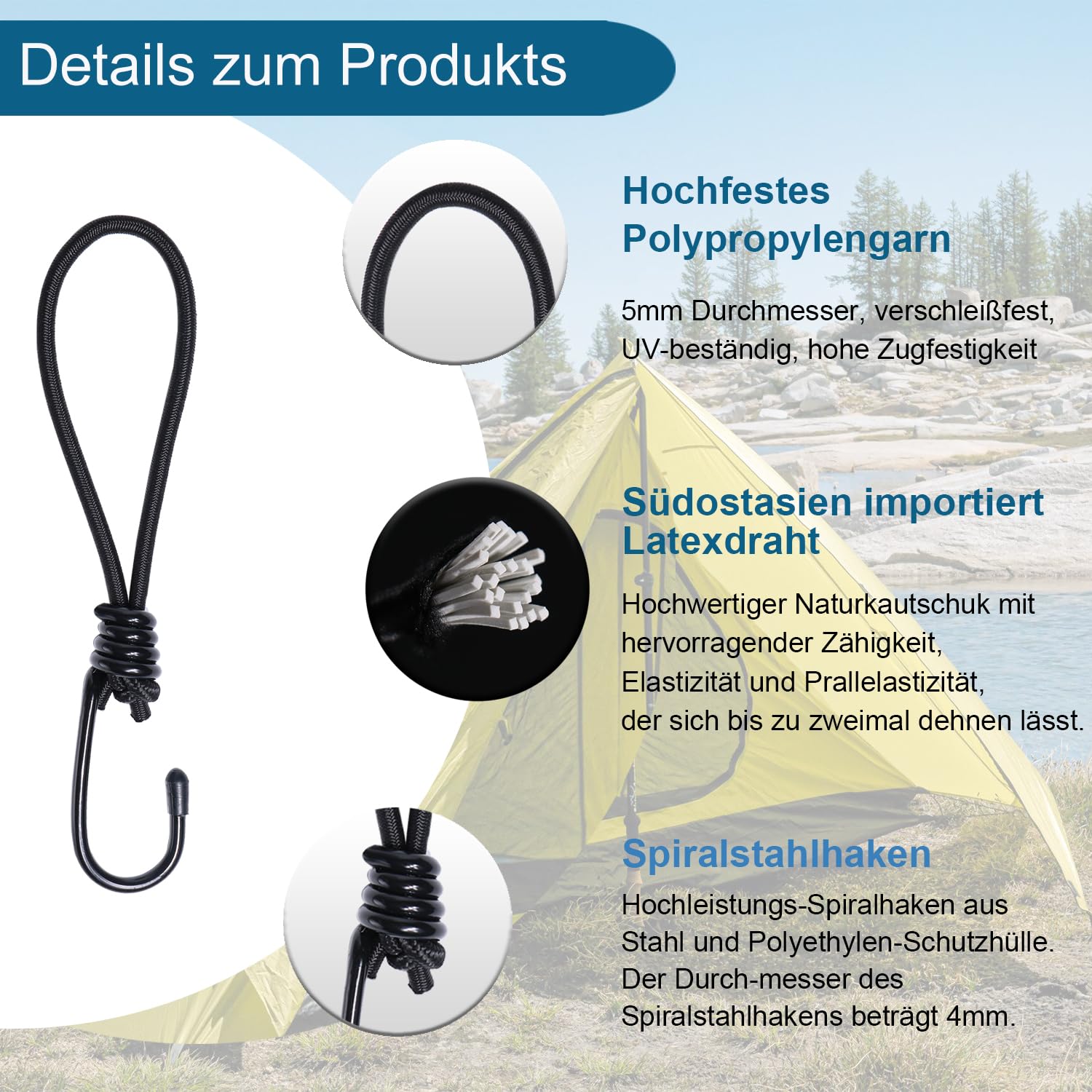 Les tendeurs en caoutchouc flexibles offrent un maintien optimal et sont faciles à installer et à enlever. Il suffit de passer la boucle à travers l'œillet de la tente, d'enfiler le crochet à travers la boucle et de serrer. 12 Pièces Tendeurs Elastique avec Crochets, Tendeur Bache Sandow, Longueur 25 cm... Un total de 12 tendeurs en caoutchouc d'une longueur totale de 27 cm, extensible jusqu'à 47 cm. Taille détaillée : le diamètre du tendeur en caoutchouc est de 5 mm et la longueur est de 20 cm. Grâce à la finition de qualité supérieure, les boucles d'expansion sont particulièrement durables et résistantes aux intempéries. Qualité professionnelle : le noyau en caoutchouc hautement élastique avec environ 100 % d'étirement assure une résistance à la traction, une résistance à la déchirure et une longue durée de vie ; ②La gaine en polyéthylène et la corde tressée garantissent une résistance à l'abrasion, une résistance aux UV et aux intempéries ; ③ Le crochet à vis en acier haute performance est solide et stable, ne se déforme pas facilement et peut résister à une plus grande pression. 【Multi-application】Il suffit de l'étirer pour maintenir fermement en place les bâches, posters, bannières, trampolines, pavillons, tentes, voiles d'ombrage, etc. Les crochets en spirale assurent une prise ferme et empêchent tout glissement indésirable. Le diamètre du crochet en spirale est de 4 mm et la longueur est de 7 cm. Mooshy Lot de 12 tendeurs en caoutchouc avec crochets Crochet De Fixation Pour Bâche Lot De 12 Tendeurs En Caoutchouc Avec Crochets - 26 Cm Tendeur élastique Crochet C'est votre bon assistant à tout moment.