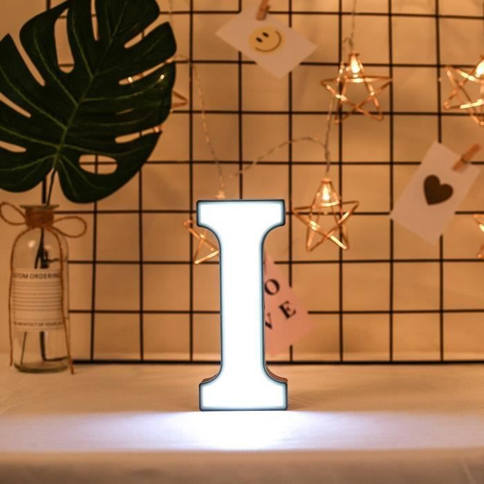 Matériau : plastique ABS. Afin de préserver la durée de vie de votre produit, veillez à le protéger de la pluie ou de l'environnement humide. Lumière LED - OKUMGGYJ - Lettre I - Dorée - 16x8x3 cm - Intérieur - Piles AAA · Dimensions : 16 x 8 x 3 cm · Matières : plastique · Technologie de l'ampoule : LED Alimentation : 2 piles AAA (piles non incluses). Chaque centimètre est parfait. Alimentation : 2 piles AAA (non incluses). - Vous pouvez l'accrocher ou tenir debout et accéder facilement à l'interrupteur pour éteindre et prolonger la batterie lorsque vous n'en avez pas besoin. Les lettres lumineuses peuvent être posées sur la table ou accrochées au mur. En plastique, poids léger. Hililand lampe de lettre Plastique LED 26 Alphabet Anglais Veilleuse... Chiffres LED - Chiffres éclairés de 0 à 9 et A à Z avec ampoule LED - Lumière blanche chaude - Éclairage de décoration - Éclairez vos mots préférés pour des occasions spéciales, des événements ou décorer la maison, comme la maison, une fête d'anniversaire, en plein air, un bar, un café, une chambre d'enfant, etc. Lettre Pour Boite Lumineuse Lampe LED Décorative De Bureau, Veilleuse De Bureau, Style De Vacances Boite Lumineuse Message - Peut être accroché au mur et affiché sur la table. - Ni trop grand, ni trop petit. Remarque : Retirez les piles si la lumière ne doit pas être utilisée pendant une longue période. - Conçu avec un trou de suspension. Asiproper Luci LED Decorative a Forma di Lettere 3D LED Luce Atmosfera Lampada D