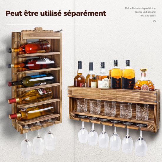 Excellent support pour ranger ou commencer toute collection de vin Très facile à installer au mur. Bar Mural Rangement Au Mur Pour 31 Bouteilles De Vin Support Bouteille Mural Taille 42,9 x 12,2 x 21,8 cm. Les verres à vin s'accrochent à l'envers sous le rebord pour rester à l'abri de la poussière et à portée de main. J JACKCUBE DESIGN MK699B Étagère à vin murale pour 9 bouteilles, élégant et rustique en bois blanc pour cuisine et décoration d'intérieur Le support mural maintient les bouteilles et verres à pied hors des comptoirs. Décorez votre maison, votre bureau et votre espace intérieur et extérieur avec nos articles ménagers uniques et organisez des produits en créant un espace avec style et couleur Excellent accessoire de vin et cadeau pour Noël, fête des mères, anniversaire, pendaison de crémaillère, liste de mariage, etc. Casier à vin mural décoratif qui sera du plus bel effet dans votre maison Offre un rangement et un affichage pour 5 bouteilles de vin, 4 verres à pied et votre collection de liège. Taille. 9 x 5.3 x 42.9 inche ; Matériau. Bois de fer forgé ; Dimensions du produit. 13,5P x 22,9l x 109H centimètres ; Type de fixation. Montage mural ; Type · Porte... Ma Cave à vin, expert en caves et armoires à vin. S'accroche magnifiquement dans votre maison, cuisine, salle à manger, bar, bureau ou cave à vin. Peut contenir la plupart des bouteilles de vin standard