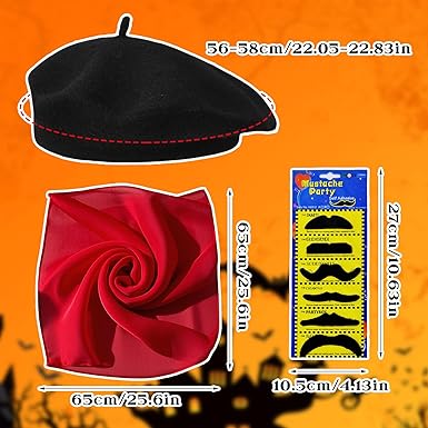L'emballage comprend : 2 x béret, 2 x moustache. Utilisation polyvalente : idéal pour les soirées à thème français, les événements culturels, les costumes d'Halloween ou comme ajout amusant à votre garde-robe quotidienne. Parfait pour un thème français. Fausse Moustache KECDRU Accessoires De Déguisement Français Pour Femme, Béret Rouge, écharpe, Lunettes De Soleil, Gants, Ensemble Vintage Pour Fête à Thème Français, Cosplay, Style Parisien Beret Femme La veste d'uniforme est bleue Déguisement - Masque lunettes nez moustache - Adulte - Noir - Intérieur... Parfait pour les soirées à thème ou les événements costumés. L'univers du costume et de l'accessoire - Qualité à petits prix Que ce soit pour une fête déguisée, un carnaval, un bal masqué, une soirée perruque, ou Halloween, notre site a rassemblé la plus vaste collection de costumes pour hommes et femmes Déguisement français : aucune tenue française n'est complète sans une moustache française, cet ensemble peut créer des déguisements français que les hommes peuvent également porter. Ajoute une touche de style parisien à n'importe quelle tenue. Déguisement Couple pour Halloween ~ Déguisement Halloween