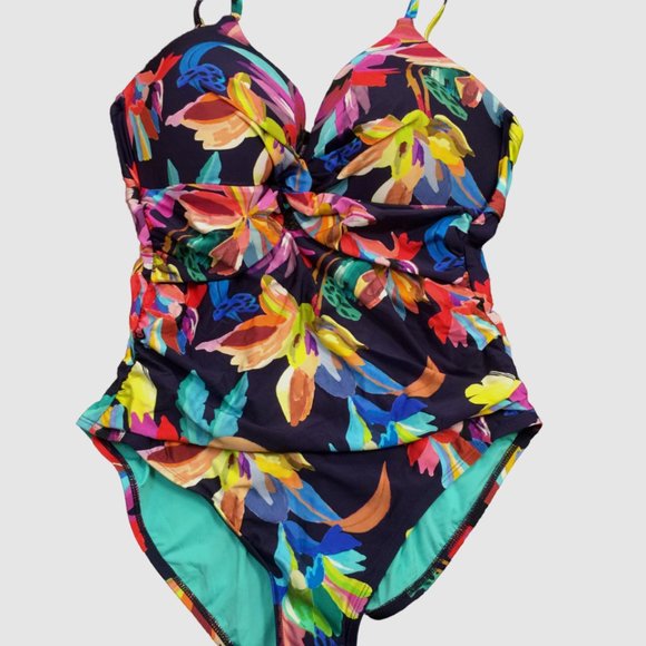 Underwire Bikini Top La Blanca Synthetic Island Goddess One La Blanca | Swim | La Blanca Womens Standard Over The Shoulder Wrap... Midkini High Waisted Swimsuits Blue Scarf Top La Blanca Women's Wrap Front Bikini Top - Over The Shoulder Tropical Print Swimsuit With Underwire Support Lalavava Swimwear Tankini Sale Sail off into the sunset with this gorgeous bikini top rendered in shades of blue, yellow, orange and pink. The V-neck that twists at the center accentuates the bustline, while thick, over-the-shoulder straps convert for two looks in one smartly stylish design
