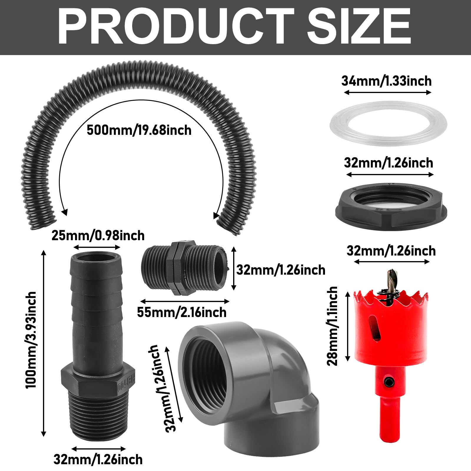 Caractéristiques : Matériau : plastique Poids : 100 g Couleur : Noir Contenu de la livraison : 1 tuyau flexible ondulé de 0,5 m de 25 mm, 2 raccords, 2 écrous, 2 bagues d'étanchéité. Peut s'écouler en douceur dans votre étang, adapté aux étangs, aquariums, jardins d'eau, barils de pluie, fontaines et aquaculture. Tolenre Spray de Poudre Paillette, Spray Paillette Corps, Poudre Libre Largement utilisé : grâce aux joints, à l'écrou de blocage et aux colliers de serrage fournis, la connexion devient plus ferme et la capacité - Ce kit de connexion est idéal pour connecter deux robinets, citernes, réservoirs, conteneurs IBC ou le raccordement de citernes de pluie aux tuyaux de descente 【Bonne qualité】 Il est fabriqué en plastique de haute qualité, doux et élastique, ondulé pour éviter les plis, solide et durable. Raccord Cuve Eau Kit De Raccordement Pour Citerne De Pluie, 2 Passages De Citerne De Raccordement Cuve 1000l Méthode d'installation : Faites un trou de 28 à 30 mm de diamètre dans le canon. Convient pour le raccordement à tous les barils de pluie courants. 【Dimensions de l'ensemble de connecteurs Rain Butt】Diamètre du tuyau : 25 mm, longueur : 50 cm. Kit De Raccordement Pour Citerne De Pluie, Diamètre 25 Mm, Tuyau De...