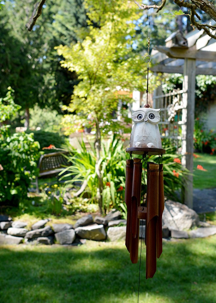 Carillon Éolien, Résistance Aux Intempéries Simple Carillon Éolien Carillon Éolien Extérieur À Suspendre Chouette Papillon Colibri Ange... Carillon À Vent Décoratif Hibou Chouette Suspendu Avec 4 Tubes Creux Et Description La base de ce carillon éolien exotique présente un magnifique hibou sculpté à la main avec une finition blanchie à la chaux. Le battant et le carillon sont fabriqués à partir de bambou et produisent ensemble un ton méditatif naturel. REMARQUE : Nos carillons en bambou populaires sont fabriqués à la main en Indonésie, où le climat est généralement chaud et humide...