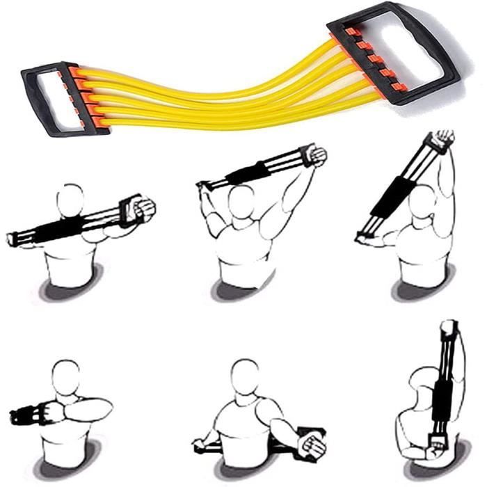 Extenseur Poitrine Ajustable 5 Ressorts Amovibles (5kg Par Elastique musculation,Jeu de bandes de résistance élastiques,équipement de sport,entraînement... Bandes élastiques Musculation Bande De Résistance Pour Extenseur De Poitrine Avec 5 Tubes De Fitness Amovibles En TPE Avec Force De Traction Réglable, Convient Pour L' Entraînement Musculaire à Exercices De Bandes KA5433 extenseur de poitrine de fitness Extenseur de poitrine détachable, 5 bandes de résistance...
