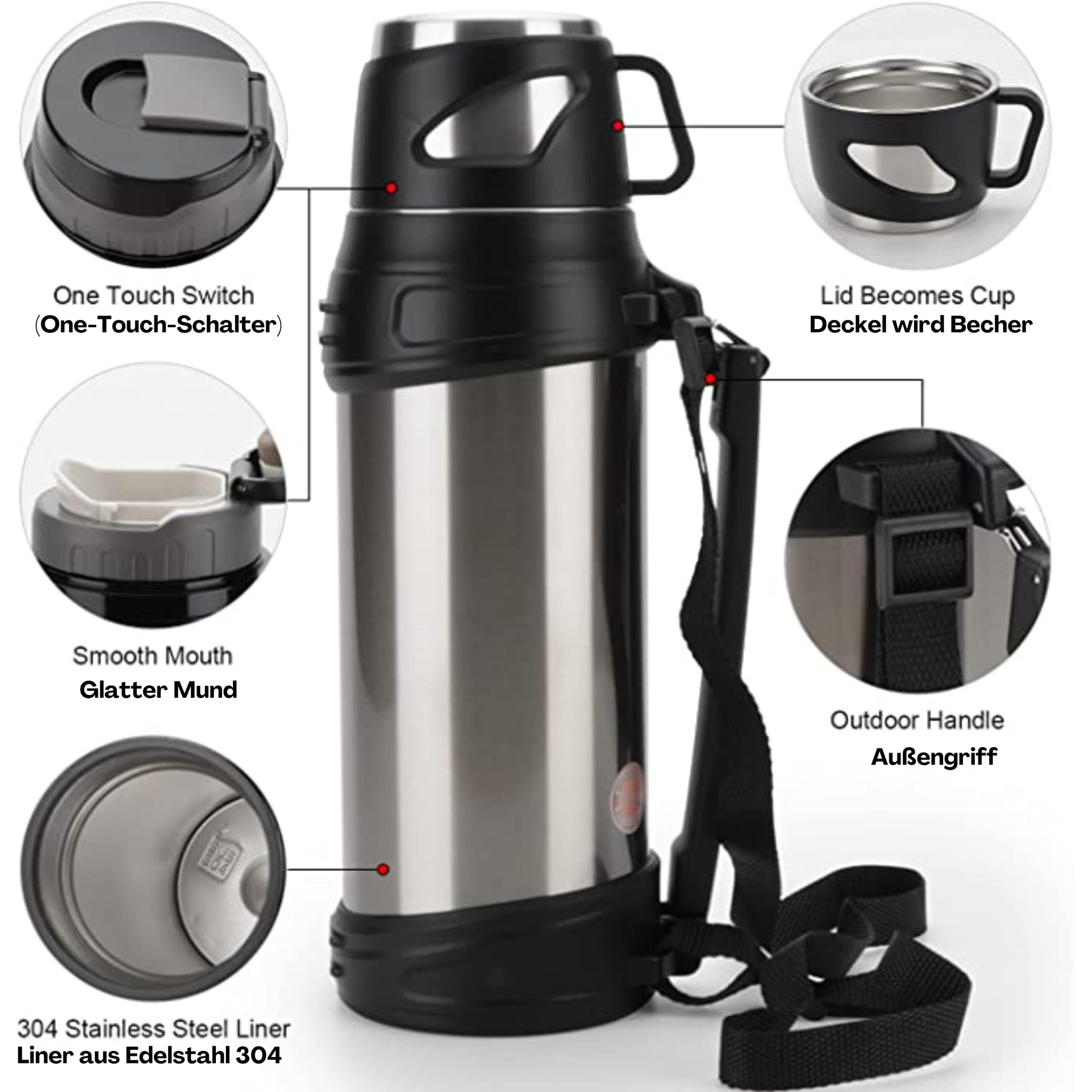Capacité : grande bouteille isotherme de 2 litres, parfaite pour stocker et maintenir la température des boissons chaudes tout au long de la journée Design portable : équipé d'une poignée de transport et d'une construction robuste pour un transport facile et une utilisation quotidienne Rétention de la température : l'isolation à double paroi aide à maintenir une température optimale de boisson pendant de longues périodes Les bouteilles d’eau isothermes sont des équipements essentiels dans nos vies quotidiennes comme dans nos sorties de plein air. Voici quelques conseils et options pour vous aider à faire le tri et trouver celles qui vous correspond Bouteille d'eau isotherme double réutilisable en acier inoxydable sans BPA pour garder les boissons 24h froides et 12h chaudes (fleurs bleues, 750 ml). 2,3... Thermos Isotherme Bouteille Isotherme En Acier Inoxydable 2 L, 100 % Anti-Fuite, Double Paroi, Garde Les Boissons Thermos Cafe Bouteille Isotherme Thermos En Acier Inoxydable Avec Gobelet Et Sac De Transport Pour Boissons Chaudes Ou Froides 750ml