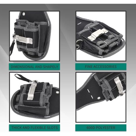 Ceinture réglable en nylon pour sécuriser votre poche à la taille. Description de la pochette : - Fabriqué en tissu Oxford de haute qualité, les bords sont cousus avec du fil de nylon, ce qui est robuste et ne tombe pas facilement. Matériau : Tissu OxfordUtilisation principale : Rangement d'outils**Construction durable et fiable**Fabriquée en tissu Oxford de haute qualité, cette ceinture à outils pour électricien est conçue pour résister aux rigueurs d'une utilisation quotidienne. La plaque en polyéthylène robuste assure un maintien sûr de vos outils, tandis que la doublure et le revêtement en tissu Oxford... Contenu : - 1 pochette pour outils. - Les mesures étant prises à la main, les tailles indiquées peuvent varier légèrement. Il y a 5 poches de différentes tailles et profondeurs pour ranger vos outils de travail et accessoires. Le clip arrière vous permet de clipser votre sac banane à votre ceinture ou ceinture à outils pour un transport et une installation faciles Remarque : - Pochette uniquement, outils non inclus. Knipex Pince Clé Pochette à Outils Avec Clip De Ceinture, Pochette à Outils D Ceinture Pochette A Outils Electricien Multifonction Pour Reparation Autour De Votre Jambe Mini Organisateur 98954145 Ceinture A Outils Dimensions du sac banane : 25,5 x 15,5 x 2,5 cm Ulisem Sac à Outils Multifonctionnel Pour électricien, Pochette De Ceinture Support De Rangement Pour Ceinture Noir 89470067 Il y a 5 poches de différentes tailles et profondeurs pour ranger vos outils de travail et accessoires. Le sac banane est fabriqué en matériau Oxford de haute qualité pour plus de durabilité. <br/Le design du clip arrière vous permet de fixer votre sac banane à outils à votre ceinture ou ceinture à outils pour un transport et une installation faciles. S'ajuste à votre taille. Le sac banane est fabriqué en matériau Oxford de haute qualité pour plus de durabilité.