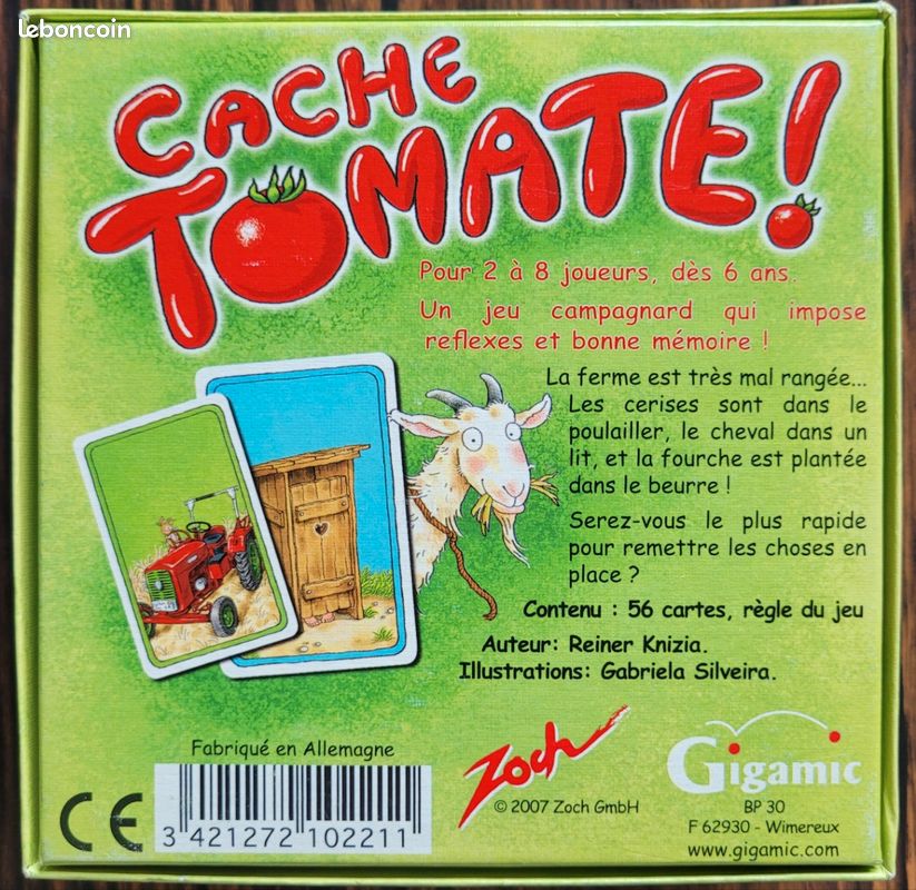 Description du produit Robert et Marguerite possèdent une énorme ferme, et il leur arrive parfois de s'y perdre un peu. Jeu De Cartes Jeux à Partir De 6 Ans Zoch Pour Jouer à Zoch 601105035 Everything Tomato Jeu De Cartes Règles Nombre de joueurs: 2-8 Zoch Kings & Creatures, Jeu de Cartes et à Collectionner, pour 2 à... Cache-cache Notes - Clé de fa Finition des cartes Brillant Jeu Smartgames à partir de 6ans.L’hiver approche! Au centre de la table, 7 cartes retournées, préalablement mémorisées, sur le thème de la ferme: les produits de la ferme, les fruits, les légumes, les animaux, les outils, les bâtiments, dans la ferme Âge recommandé : 6 ans - 18 ans Pouvez-vous les aider à remettre les choses à leur place? Au centre de la table, 7 cartes retournées, préalablement mémorisées, sur le thème de la ferme: les produits de la ferme, les fruits, les légumes, les animaux, les outils, les bâtiments, dans la ferme.