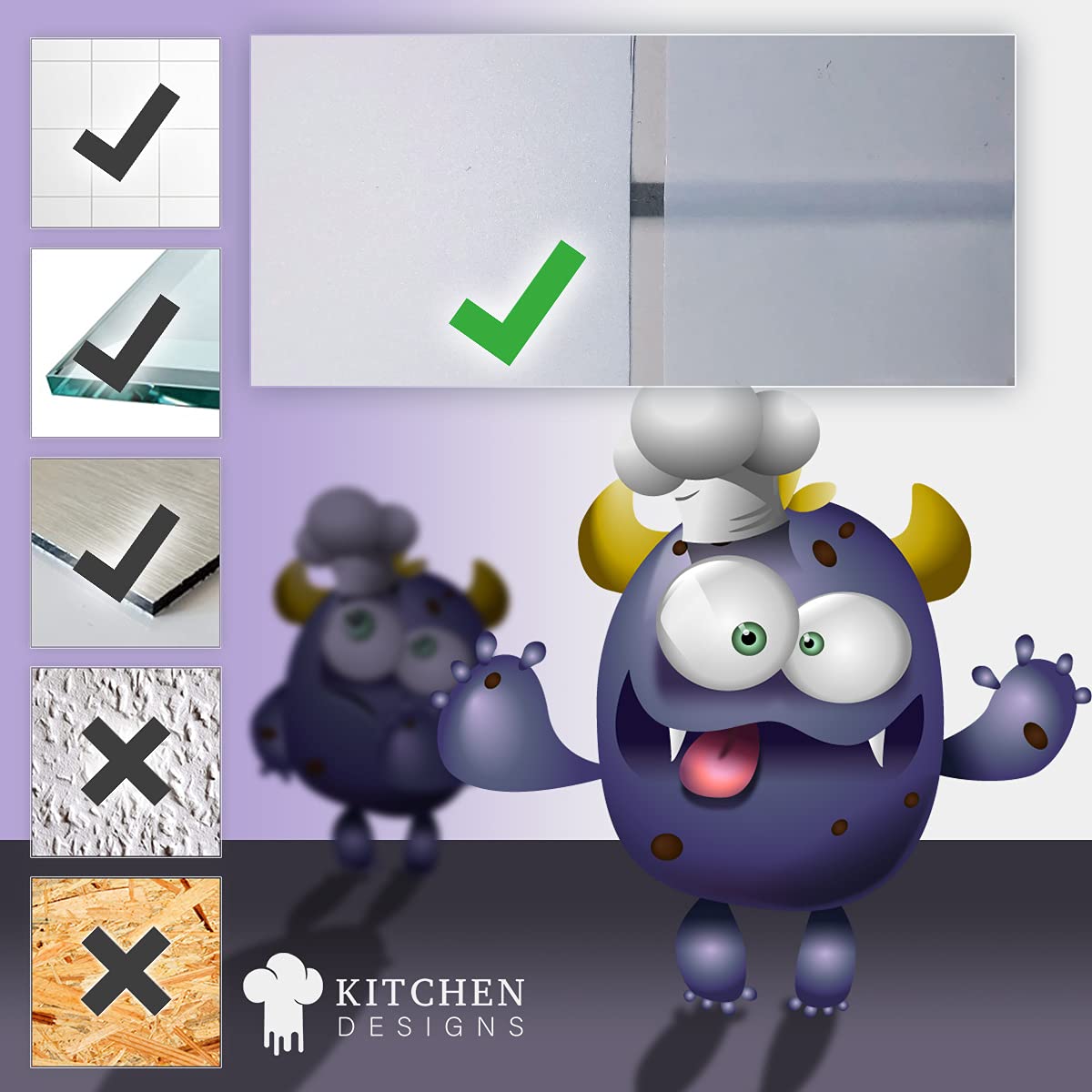 Chez nous, vous trouverez un grand choix de motifs haute résolution pour votre carrelage de voiture. Le film est autocollant et adhère à toutes les surfaces lisses comme le verre, le verre acrylique, les panneaux de particules enduits et bien sûr sur le carrelage. Informations : Montage facile (voir vidéo de montage sous cette description). Les murs et les enduits non traités doivent être peints à l'avance avec une peinture murale (ne pas utiliser de peinture au silicone). Il suffit de découper les prises de l'autocollant avec un cutter ou des ciseaux., Vidéo de montage Couvre les joints de carrelage et compense les irrégularités (les carreaux inégaux et les irrégularités grossières ne peuvent pas couvrir complètement le film). Dimensions: 30,5 x 30,5 cmApparence et sensation 3D Premium: Cette tuile autocollante 3D ajoute une beauté instantanée à vos murs, ils ressemblent à de vraies tuiles, mais à moindre coût et avec moins de travailÉtapes simples de bricolage: nettoyer les murs, couper les tuiles à volonté (seulement si nécessaire), peler, interverrouiller et coller. Construction sans coulis, sans colle... Changez l'apparence de votre cuisine en un rien de temps sans grandes modifications. La vapeur d'eau et les éclaboussures de graisse n'endommagent pas le film. Les stickers muraux sont idéaux pour les logements en location car ils s'enlèvent sans laisser de traces. Autocollant crédence avec des motifs de fruits Ne convient pas pour : papier peint ingrain, crépi, plâtre. OneWheel | Autocollant Mural Pour Crédence De Cuisine | 280 X 80 Cm Film PVC Rigide | Sticker Mural Pour Carrelage Design Fruits Blanc | Motif : Verres à Fruits ✅ Protection anti-éclaboussures décorative : les décorations murales sont bon marché, protègent contre les éclaboussures de graisse et mettent en valeur votre cuisine. ✅ SUPPORT POUR LA DECORATION : carrelage lisse, verre acrylique, verre, aluminium dibond, surfaces peintes, métaux, toutes les surfaces lisses. Film PVC rigide de qualité supérieure de 0,4 mm - Ce film est très épais et très rigide (idéal pour couvrir les joints de carrelage). Peu coûteux, mais tout aussi fonctionnel et décoratif ; un pare-éclaboussures autocollant pour la cuisine Plus de Pictufy Studio Informations sur le produit Dimensions: Choisissez, s.v.p. 90x50 cm59,99 € 120x50 cm84,99 € 150x50 cm104,99 € 200x50 cm134,99 € 90x60 cm74,99 € 120x60 cm99,99 € 150x60 cm124,99 € 200x60 cm154,99 € 4 Autres articles avec ce motif 2 Accessoires... Vous serez étonné de constater à quel point il est facile de poser ce film et à quel point l'atmosphère de votre cuisine change.
