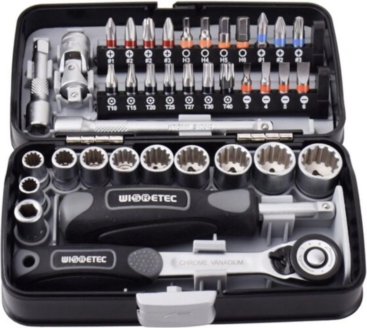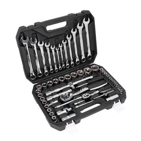 Douille 1/4, 40 unités• Douilles en acier chrome-vanadium• 1 cliquet 1/4, 24 dents, avec permutation d'une seule main, éjection rapide et manche deux composants• 12 douilles 1/4 taille 4´- 4,5 - 5 - 5,5 - 6 - 7 - 8 - 9 - 10 - 11 - 12 - 13 mm• 1 rallonge 1/4 x 100 mm• 1 adaptateur 1/4 quatre pans intérieur sur 1/4 quatre pans extérieurs• 1 adaptateur 1/4 six pans extérieur sur 1/4 quatre pans extérieurs• 1 joint-cardan avec carré intérieur et extérieur 1/4• 1 clé à douille à quatre pans intérieurs et extérieurs 1/4, manche en plastique• 4 inserts de vissage plat 1/4 taille 4 - 4,5 - 5,5 - 6,5 mm• 3 inserts de vissage 1/4 cruciforme tailles 1 - 2 - 3 • 2 inserts de vissage 1/4 pozidriv taille 1 - 2• 5 inserts de vissage 1/4 TX taille 10 - 15 - 20 - 25 - 27• 5 inserts de vissage six pans intérieurs 1/4 taille 2,5 - 3 - 4 - 5 - 6 mm• 3 clés mâles coudées à 6 pans, taille 1,5 - 2 - 2,5 mm Si vous ne faites aucun compromis sur la qualité, alors ne passez pas à côté de la gamme CONNEX. Embouts de clé à douille en acier au chrome vanadium 1 cliquet 1/4, 45 dents Avec changement de sens à une main, éjection rapide et poignée en matériau composite 12 embouts de clé à douille 1/4, taille 4 4,5 5 5,5 6 7 8 9 10 11 12 13 mm 1 extension 1/4 x 100 mm 1 adaptateur 4 pans internes 1/4, 6 pans internes 1/4 1 adaptateur 6... Connex COX580240 Jeu de clés à douille; 40 pièces 1/4" 3 embouts de visseuse 1/4 pour vis cruciformes, taille1-2-3 1 clé à douille avec 4 pans internes et 4 pans externes 1/4, poignée plastique Avec changement de sens à une main, éjection rapide et poignée en matériau composite 1 adaptateur 6 pans externes 1/4, 4 pans externes 1/4 3 clés mâles coudées six pans, taille 1,5-2-2,5 mm 12 embouts de clé à douille 1/4, taille 4-4,5-5-5,5-6-7-8-9-10-11-12-13 mm , 1 extension 1/4 x 100 mm 4 embouts de visseuse 1/4 pour vis fendues, taille 4-4,5-5,5-6,5 mm Jeux De Douilles à Cliquet Connex COX580364 Jeu De Clés à Douille; 14 Pièces 1/4 Jeu De Douille En Plastique Connex COX580240 Jeu de clés à douille; 40 pièces 1/4 - Embouts de clé à douille en acier au chrome vanadium1 cliquet 1/4, 45 dentsAvec changement de sens à une main, éjecti… Voir la présentation Voir la présentation du produit Voir le descriptif technique En 1 fois75,63 € En 4 fois19,39 € 75€63 Payez en 4 fois par carte bancaire 1ère mensualité de 19€3919,39 € Suivi... Connex Steckschlüssel-Satz, 1/4 Zoll, 40-teilig, COX580240