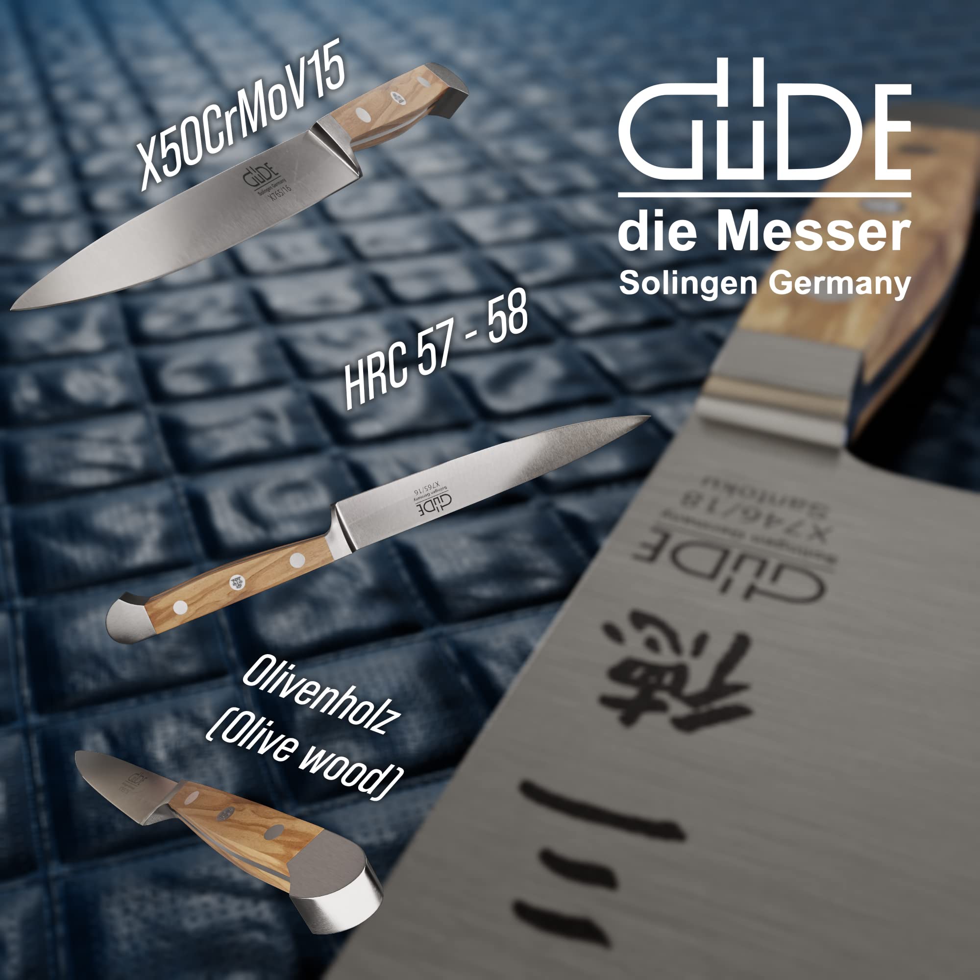 Nettoyez la lame du couteau à l'eau chaude après utilisation et séchez le couteau. Güde Solingen - Santoku Avec Lame Forgée, 14 Cm, Bois D Chaque bois a été soigneusement sélectionné, possède des grains uniques et une propre histoire. Attention : les couteaux GÜDE sont extrêmement tranchants. Nettoyez la lame du couteau a l'eau chaude apres utilisation et sechez le couteau. Des couteaux tels qu'ils etaient fabriques dans le passe, et dans la tradition de Solingen, c'est ce que represente l'entreprise familiale GUDE De nombreux prix et des séries de couteaux uniques sont la preuve que GÜDE est l'un des meilleurs fabricants de couteaux au monde. Un couteau unique de GÜDE Lames forgées à la main de Solingen - tranchantes et durables. · L'artisanat traditionnel rencontre le design moderne et la précision. · Jusqu'à 55 étapes de... La marque de fabrique de la série Alpha est la double mitre. Pour un affûtage durable, le couteau doit être aiguisé régulièrement. Güde Messer Solingen Käsemesser Güde Alpha Hartkäsemesser 10cm, Walnuss, Parmesa Les couteaux ne doivent pas être mis au lave-vaisselle, même si certains couteaux sont compatibles avec ce type de lave-vaisselle. Le mot San signifie 3 (viande, poisson, légumes)., Toku signifie vertu. Il en résulte des lames très tranchantes, un équilibre idéal et une dureté allant jusqu'à 58 HRC. L'acier utilisé est le X50CrMoV15 et est inoxydable. Les couteaux ne doivent pas être mis au lave-vaisselle.
