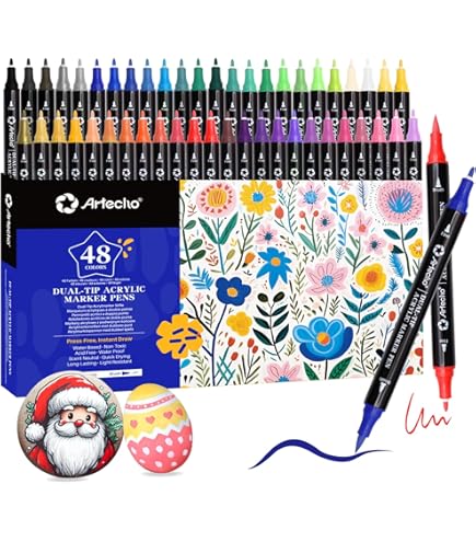 Remarque : Les stylos acryliques imperméables sur l'œuvre finie ne sont pas affectés par la pluie et la lumière du soleil et la couleur ne s'estompe pas après une longue période. Il ne s'agit pas d'un jouet. Caractéristiques techniques : Nom : DealKits Stylos acryliques pour pierres imperméables Couleur : 36 couleurs marqueur de peinture acrylique imperméable Emballage : 16 x 16 x 4 cm Poids : 331 g. DealKits 36 feutres acryliques colorés, feutres double pointe pour peindre des pierres, résistant à l'eau, multimarker, double pointe, acrylique, marqueur... Appuyez vers le bas pour éviter les fuites d'encre. Ces stylos étanches et fluides permettent à tout artiste Bricoleur ou tout enfant avec leurs couleurs vives et leurs paillettes hautement réfléchissantes., séduisant. À utiliser uniquement sous la surveillance d'un adulte. Fabrication de qualité supérieure - Les stylos acryliques disposent d'une plume stable et d'une pointe en fibre synthétique dure, durable et pratique. Lot de 36 marqueurs double pointe - COPIC - Couleurs Si vous rencontrez des problèmes pendant l'utilisation, veuillez nous contacter. Pointe : pointe ronde de 1 mm et 3 mm. Description de la garantie du vendeur : Tous les produits DealKits bénéficient d'une garantie de remboursement de 45 jours et d'une garantie de remplacement de 24 mois. Mais il n'est pas recommandé de les laver au lave-vaisselle ou de les essuyer vigoureusement. Tooli Art Shuttle Art Feutre Acrylique 48 Couleurs (36 Vibrantes 12 Métalliques) - Double Pointe (Pinceau & Fine) - Marqueur Acrylique Pour Toile, Pierre, Verre, Céramique - Non Toxique - Art Adulte & DIY Feutres Acrylique Couleurs riches – 36 couleurs (blanc, noir, argent, or, vert herbe, vert, crème, jaune clair, jaune, orange, rose, lavande, rose, rouge, bleu bébé, bleu, violet foncé, marron, etc., ). Encre à base d'eau, séchage rapide, imperméable, résistante à l'abrasion, résistante à la décoloration et à l'abrasion, elle peut être facilement appliquée ou mélangée en plusieurs couches ; en même temps non toxique, sans acide, et a une finition brillante, ne coule pas et peut être appliquée presque partout. La couleur coule en douceur et écrit très doucement et glisse sans effort sur le côté, pas de lacunes ou de bulles dans l'encre. Une gamme de stylos acryliques aux couleurs vives différentes aide à développer l'imagination et la créativité des enfants. La couleur non toxique est certifiée selon les normes américaines Conforme aux normes de sécurité européennes CE et EN71., Caractéristiques : Couleurs vives., Encre bien visible., Séchage rapide., * Imperméable., Ne goutte pas., Ne se décolore pas., Pas de cuisson. Contient de petites particules finement broyées, ce qui garantit le confort même lors de travaux prolongés, parfaits pour les détails fins et pour remplir de grandes surfaces. Lorsque vous l'utilisez, Vous devez d'abord diriger la pointe du stylo vers le haut, puis la pointe du stylo acrylique avec la main. Papier, bois, album photo, plastique, verre. Nombreuses utilisations : fonctionne sur pratiquement toutes les surfaces métalliques, céramique, toile, pierre, papier noir, carte noire, bois, album photo, plastique, nappe, mur, verre, tissu, etc.