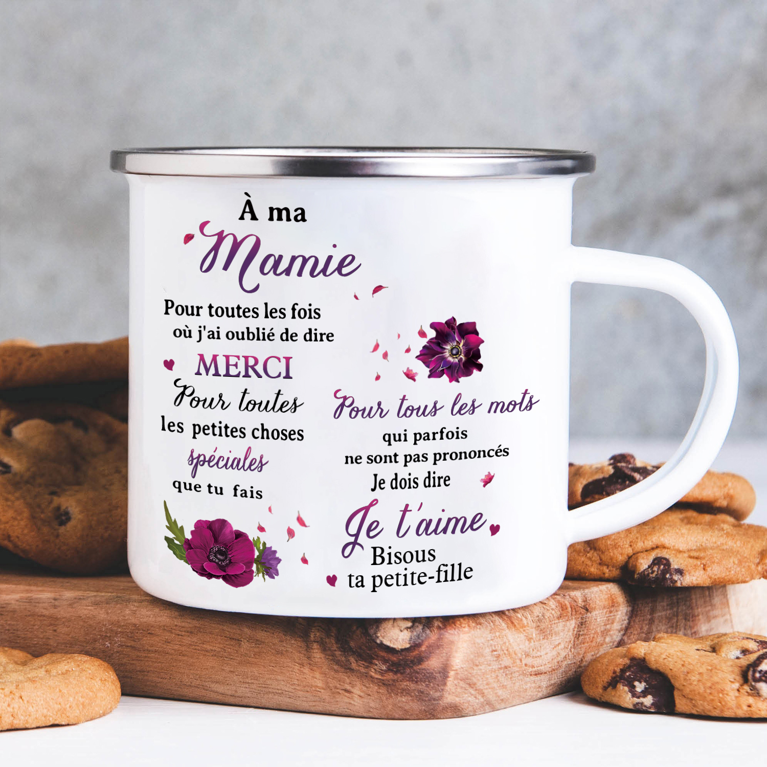 MUG PERSONNALISABLE SUPER MAMIE : Un cadeau idéal pour remercier une ! Super Mamie Mug Mamie Personnalisé – Affirmée 2 Tasse Personnalisée Mug Personnalisé Mamie Gifts Cadeaux Mamie DES TASSES EN CÉRAMIQUE RÉSISTANTE : Plus qu'un mug design, cette tasse en céramique d'une contenance de 25 cl est conçue pour l'usage quotidien et résiste autant au micro-ondes qu'au lave-vaisselle. Nous vous proposons toute une gamme de tasses et gourdes à personnaliser avec une photo souvenir, un mot cool, un joli design, un prénom, une annonce surprise... Com est le spécialiste en ligne des produits personnalisés à offrir à ces proches en toute occasion ou juste pour faire plaisir ! Une idée de cadeau parfaite pour lui montrer combien elle compte pour vous. Mug Personnalisé - Citation - Naissance - Mamie DES CADEAUX PERSONNALISÉS POUR TOUTES LES OCCASIONS : Cadeaux. Vous pouvez l'offir pour un anniversaire, une fête, un pot de départ ou autre.