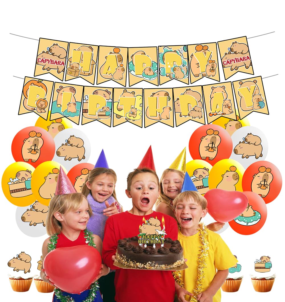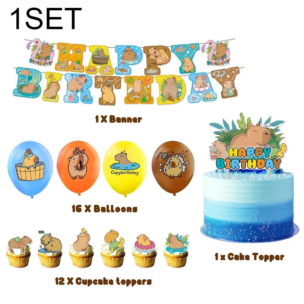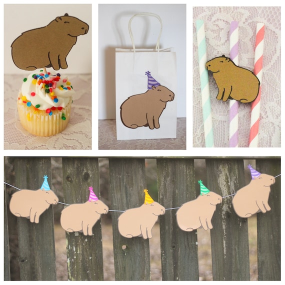 Les décorations de fête sur le thème de Capybara comprennent une bannière d'anniversaire Capybara pour gâteau, des décorations de cupcakes, des ballons Décoration De Fête d'anniversaire Capybara, Fournitures De Fête Capybara : apparence, comportement, environnement naturel Autocollant Anime CAPYBARA DÉCORATIONS DE Fête D'anniversaire Capybara Fournitures De Decoration Anniversaire Enfant Matériau : les décorations d'anniversaire Capybara sont fabriquées en carton blanc de qualité supérieure. Réutilisable, rendant votre fête plus colorée et...