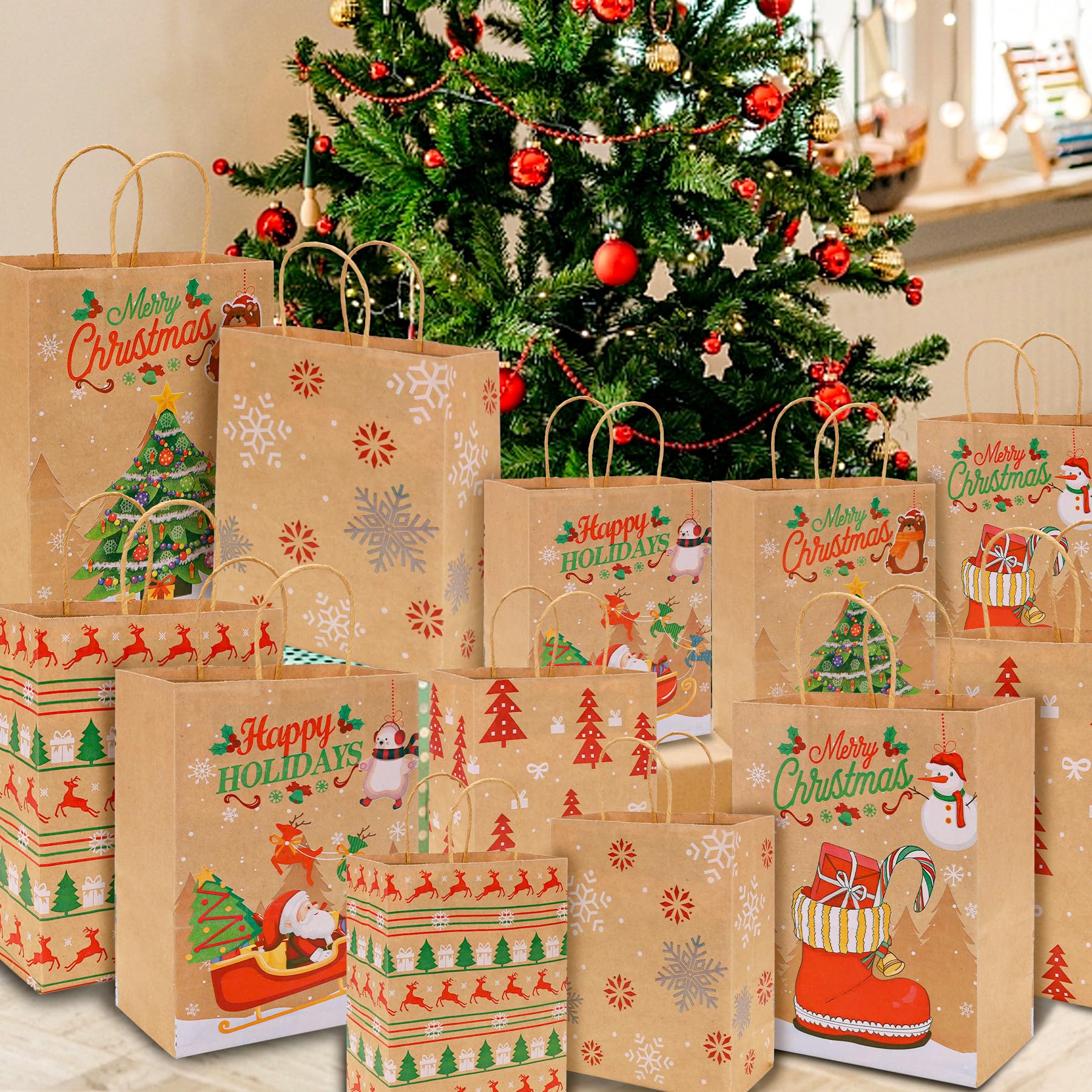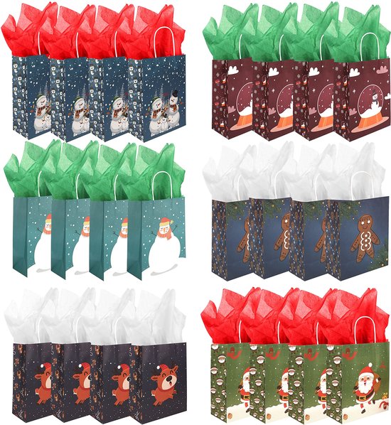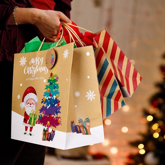 En outre, vous recevrez 24 feuilles de papier de soie en trois couleurs différentes : rouge, vert et blanc. Sachet Noel Cadeau Sacs Cadeaux Noël Kraft - Lot De 12 - 2 Tailles Qualité supérieure : les sacs cadeaux en vrac sont fabriqués en papier kraft épais de qualité supérieure et disposent de poignées rotatives en papier. Grand Sac Cadeau Noel Lot De 24 Sacs Cadeaux De No L En Papier Kraft Blanc, Tailles Moyen Sac Cadeau Noel Taille appropriée : chaque sac de Noël mesure 8,1 x 16 x 22,1 cm, ce qui le rend idéal pour emballer une variété de cadeaux, y compris des bas, des bijoux, des livres et plus encore. Grand lot de sacs cadeaux de Noël : il y a 24 sacs en papier de Noël avec 8 motifs distincts, chacun mesurant 13 x 25,4 x 32 cm. En outre, vous obtiendrez 24... Choix de papier cadeau parfait : ce sac cadeau de Noël est polyvalent et convient à différentes occasions. Chaque sac contient également un fond renforcé en carton robuste qui garantit qu'ils sont assez robustes pour transporter une variété de cadeaux, tels que des jouets et des bonbons. Cette combinaison classique et élégante améliorera la présentation de vos cadeaux et vous aidera à créer des moments inoubliables.