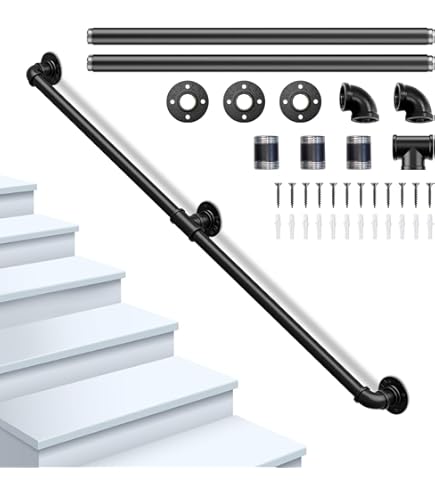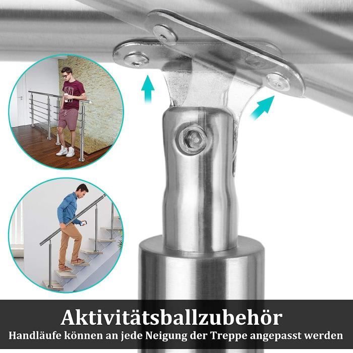 Froadp 180cm Mains Courantes à Angle Réglable, Rampe D'escalier En Acier Inoxydable, Rambarde Avec Anneau à Billes Et 2 Poteaux, Garde-corps à Tige