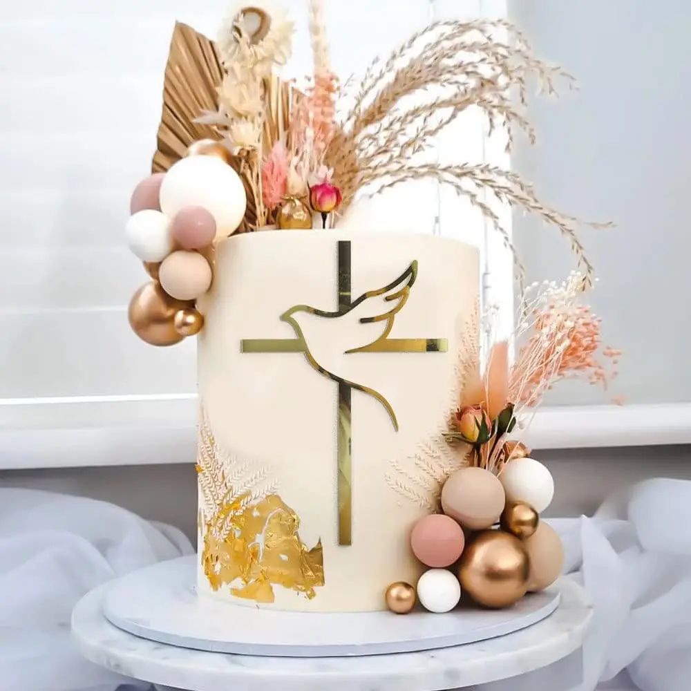 Qualité supérieure : la décoration de gâteau de baptême est durable et réutilisable, vous pouvez donc les utiliser encore et encore pour des occasions spéciales. Design exquis : les décorations de gâteau en forme de croix de colombe sont fabriquées en acrylique miroir de qualité supérieure avec une surface lisse et... Décoration de gâteau croix de communion - France Utilisation polyvalente : le kit de décoration de gâteau convient non seulement pour les fêtes de communion, mais aussi pour d'autres occasions festives telles que les baptêmes ou les fêtes. Decoration Gateau Bapteme Lot De 2 Décorations De Gâteau En Forme De Croix,Décoration De Deco Communion Fille Cake topper personnalisé ange en bois naturel Le kit de décoration de gâteau de communion est en acrylique de qualité supérieure et est spécialement conçu pour les gâteaux de communion et de baptême. Design élégant : la décoration de gâteau est composée d'une croix et d'une colombe dorée, ce qui ajoute une touche noble et festive à votre gâteau.