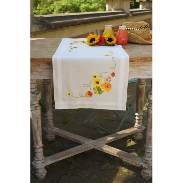 Chemin de table brodé avec tournesols et larges rayures beiges Contenu de la livraison : 1 pièce – Dimensions : 40 x 140 cm , Couleur : beige/multicolore Composition : 85 % polyester, 15 % lin - Entretien : lavage délicat jusqu'à 30 °C Tailles disponibles : 30 x 180 cm & 40 x 135 cm. Nappes en lin ou coton : les taches, un vrai défi. Envie de l'élégance française sans les taches du lin ou du... Matches21 Chemin de table à rayures de tournesols beige avec broderie multicolore 35 x 50 cm Aspect lin : : Cuisine et MaisonÀ propos de cet article Chemin de table brodé avec tournesols et larges rayures beiges Contenu de la livraison : 1 pièce – Dimensions : 35 x 50 cm Couleur : beige/multicolore Composition : 85 % polyester, 15 % lin - Entretien Chemin De Table à Rayures Bleues | Runner Collection Décoration de table - 40 x 140 cm - Écru x beige - Broderie
