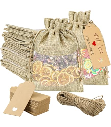 Quantité : lot de 20 sacs, cartes. Lot de 40 sacs en organza transparent de qualité supérieure Qualité supérieure et réutilisable pour vos invités. Trousseau Mariage Oriental KUPOO Lot De 20 Petits Sacs Cadeaux En Toile De Jute Transparente Avec Sac Toile De Jute Design rétro classique : sac cadeau spécial pour vos petits échantillons, savon, collations, cadeaux de mariage, cadeaux d'affaires, etc. Pochette cadeaux toile de jute rabat bordeaux avec anses et fenêtre... La fenêtre transparente visible rend vos cadeaux plus impressionnants et élégants. Chaque pochette est livrée avec une carte pour écrire et des autocollants pour votre marque. Lin avec fenêtre en organza transparent.