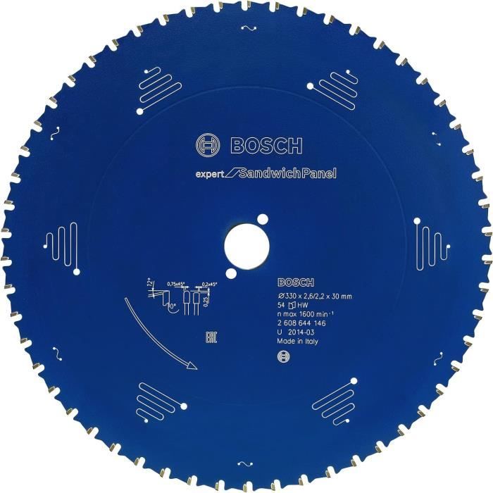 Spécification : 237 x 30 x 2,5 mm, 56 Pays d'origine : italie Lame de scie circulaire - BOSCH - 2608644025 - 165 mm - 24 dents - Outils et accessoires Lame Pour Scie Circulaire Bois Bosch Accessories 2608644068 Lame De Scie Circulaire Expert For Wood Lame De Scie Circulaire Bosch Expert Spécification : 237 x 30 x 2,5 mm, 56 Diamètre extérieur : 237 mm Nombre de dents 56 Pays d'origine : italie Avantages · Diamètre de la lame de scie: 237 mm · Dimension de l'alésage: 30 mm · Nombre de dents: 56 · Largeur de coupe: 2,5 mm · Pour matériau: Bois · Fixation... Lame de scie circulaire Expert for Wood à durée de vie prolongée pour des performances de coupe élevées dans le bois La denture MicroteQ Extra Hard est fabriquée dans nos usines Bosch avec des grains carbure extrêmement solides pour une durabilité élevée La lame adéquate pour scie circulaire standard et plongeante...Notre service après-vente est à votre entière disposition...