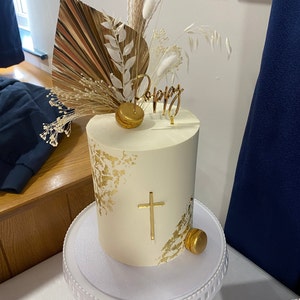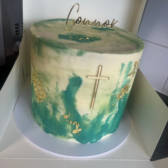 LaVenty Décoration De Gâteau En Forme De Croix Bleue Et Blanche - Décoration De Gâteau Rose - Décoration De Gâteau De Baptême - Décoration De Gâteau De Fête Prénatale - Décoration De
