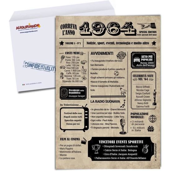 Idée Cadeau Femme 50 Ans Anniversaire | Decoration de Noel MATÉRIAUX DE HAUTE QUALITÉ : Toutes nos cartes de vœux sont fabriquées avec des matériaux de la plus haute qualité. Notre engagement constant se poursuit dans le temps propre pour garantir le moins d'impact environnemental de la part de notre entreprise : chaque matière première utilisée respecte l'environnement. phrases et commentaires événements mémorables dans les années 1973 l'espace dédié à la personnalisation du nom du célèbre consacre personnellement l'espace dédié aux signatures. Carte Anniversaire Homme 50 Ans Auguriando Carte De Voeux Anniversaire 50 Ans Idées Cadeaux Idées Cadeaux 50 Ans ✔️ Carte journal format A4 (297 x 210 mm) grammage de 300 g/m² pour être insérée dans une enveloppe blanche commerciale avec bande imprimée incluse. À l'intérieur du journal de vœux, vous trouverez les informations les plus importantes de l'année, les événements sportifs, les films et les séries télévisées, les célébrités nées de la même année et d'autres curiosités. Dans cette carte d'anniversaire 50 ans de style vintage. Conçus étudiés et dessinés par notre équipe interne qui rendent l'expression maximale du design italien pour une production durable Choisissez la sécurité et le professionnalisme pour chaque moment de fête et de joie Fabriqué en Italie : Toutes nos cartes sont fabriquées dans nos ateliers artisanaux en Italie. Carte de vœux sympathique 50 ans, cartes de style vintage, une excellente idée cadeau ou gadget pour la fête d'anniversaire 50 ans en consacrant les meilleurs vœux humoristiques que jamais Tout cela grâce à notre processus de travail organisé et en constante évolution.