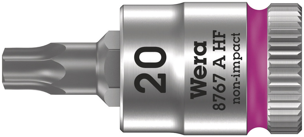 Molette à l'extrémité arrière assurant une maniabilité élevée lors des opérations manuelles , Chrome-vanadium, chromage mat Wera 003362 8767 A HF Zyklop TORX Bit Socket with Holding Function 1/4 Drive x TX10 x 28mm - BC... 8767 B VDE HF Vaso con punta Zyklop TORX®, aislada, con arrastre de 3/8 con función de retención La fonction de retenue sécurise les vis sur l'outil 8767 B HF TORX® Douille-embout TORX® HF Zyklop à Emmanchement 3/8" Avec Douille-embout avec emmanchement 3/8' et fonction de retenue pour un vissage particulièrement confortable avec un risque réduit de perdre la vis à l'approche de la pièce 8767 B HF TORX Douille-embout TORX HF Zyklop à emmanchement 3/8 avec fonction de retenue, TX 30 x 35 mm Douille à embout (sauf « impact ») pour utilisation manuelle et mécanisée